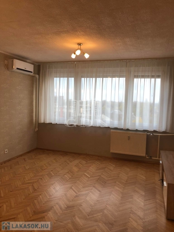 A nappali klímás, műanyag redőnyökkel felszerelt, mindkét szoba parkettázott.