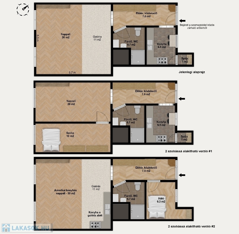 A közös költség 19000 Ft. A lakás előtt lévő, szomszéd ingatlannal közös terület külön is zárható. A gépesített konyha, a beépített szekrények és a jelenleg ott lévő, képeken látható bútorok az ár részét képezik. A konyhából egy 1 m2-es spájz is nyílik, ugyancsak beszekrényezve és használatra készen, ezen rész átalakítható szobává, ahogy a nappali egyik része is könnyen leválasztható, ezáltal egy 2 szobás ingatlan könnyen kialakítható.