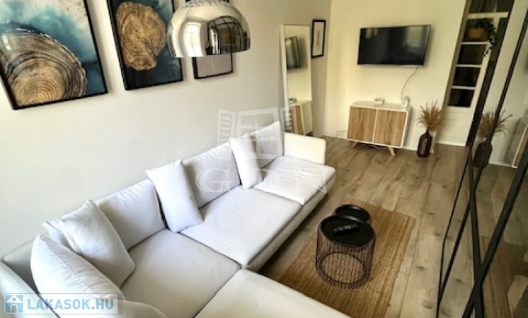 A nappaliban leválasztásra került egy félszoba, ami biztosítja a külön teret az ott élők számára. Kialakításakor a tulajdonos üvegablakos megoldást választott, növelve ezzel a teret. Természetesen ezt bárki saját ízlésére szabhatja, hisz ebben a több mint 27 m2-es nappaliban le lehet választani egy nagyobb szobát. A lakás magas minőségben és igényesen felújított, nem vizesedik, erre is nagy hangsúlyt fektetett a tulajdonos. Belmagassága 3,65 m, egy kis fantáziával, akár még galériázható is lehet. A konyha gépesített, Gorenje és Samsung gépekkel lett felszerelve. Az ingatlan per és tehermentes, azonnal birtokba vehető.