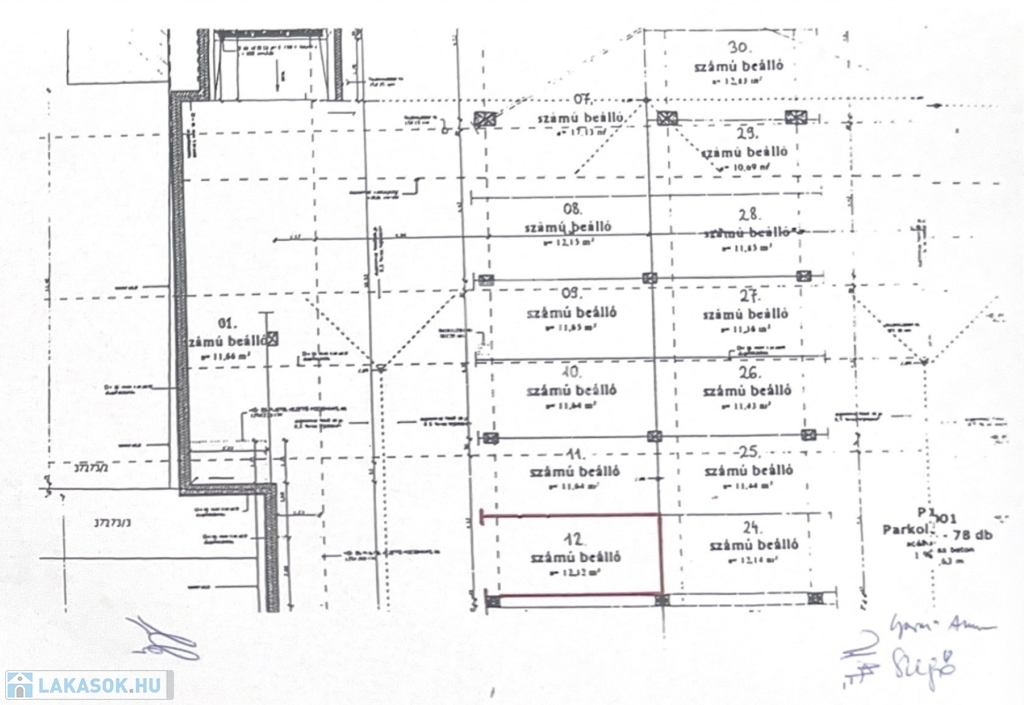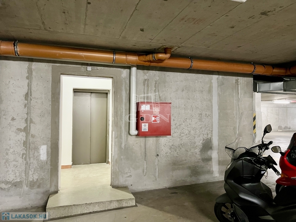 Az ingatlanhoz tartozik egy 12 m²-es gépkocsi-beálló a -2. szinten lévő teremgarázsban, elektromos kapun keresztüli bejárással. A beálló 9 900 000 Ft-ért, külön helyrajzi számmal, de csak a lakással együtt eladó.