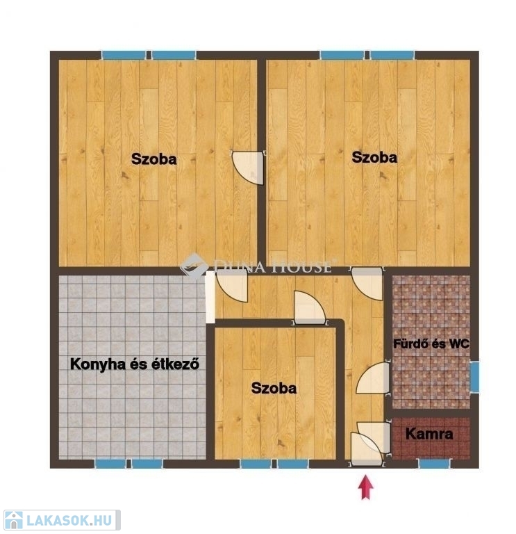 A lakás felújítandó állapotú, ami remek lehetőséget kínál arra, hogy a tereket a saját igényeidre szabd. Az elosztás praktikus és jól variálható: jelenleg két nagyobb, egymásból nyíló szoba és egy külön bejáratú félszoba áll rendelkezésre. A kényelmet étkezős konyha, kamra, valamint fürdőszoba és WC biztosítja.