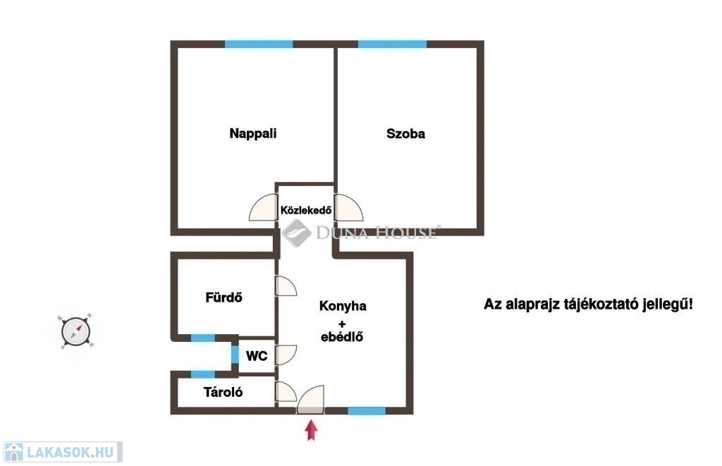 - 2 tágas, utcára néző szoba, ÉNy-i tájolással