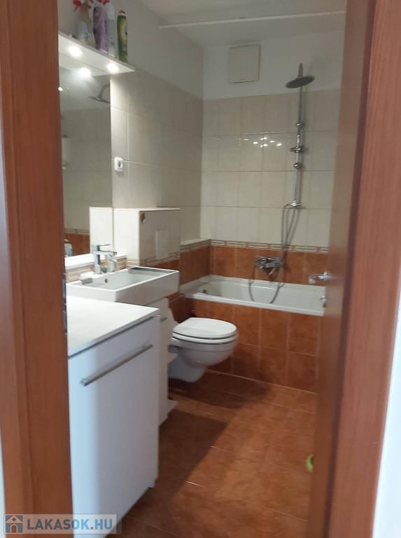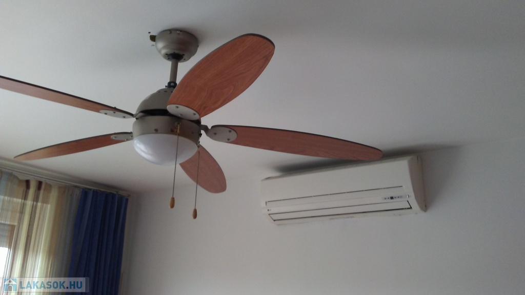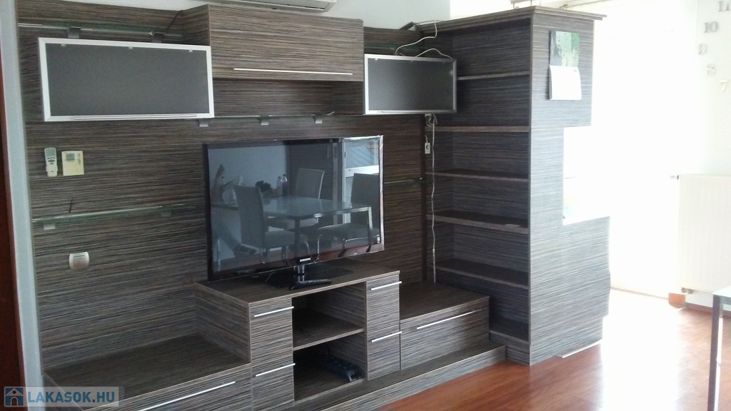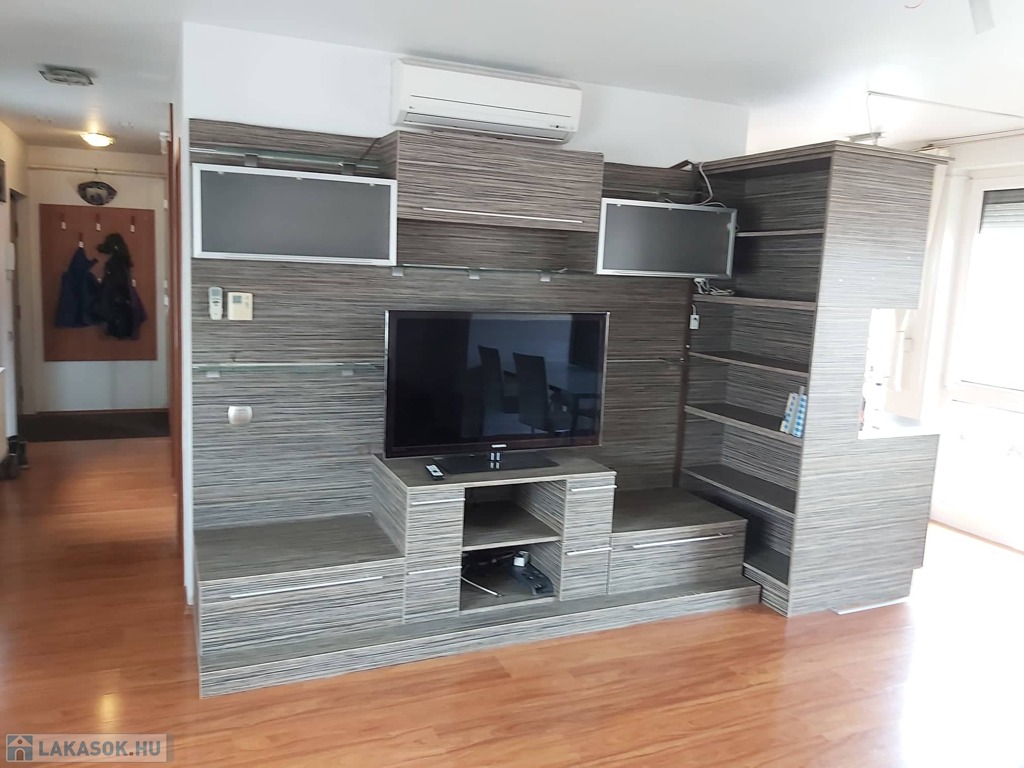 A lakás bútorozott és gépesített (mosógép, mosogatógép, sütő, főzőlap, hűtő, TV, klímaberendezés mindkét szobában).