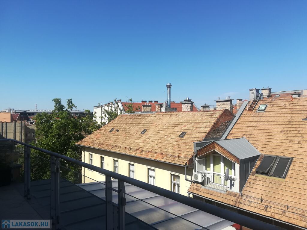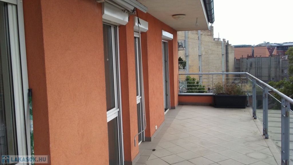 Budapest IX. kerületében, a Mester utcában, 2008-ban épült ház 6.emeletén tulajdonostól eladó egy 54 m2-es „penthouse” lakás, nagy terasszal (18,5 m2), saját parkoló hellyel (25 m2) a teremgarázsban és egy 6 m2-es tárolóval.
