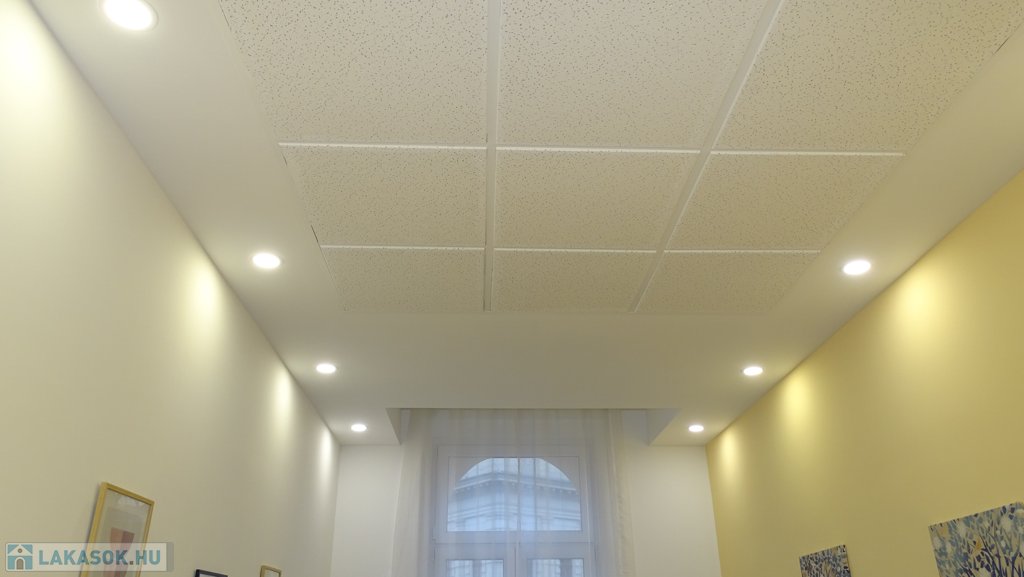 A villanyhálózat, a burkolatok, a nyílászárók cserélve lettek. Álmennyezetbe szerelt világítás van az ingatlanba, így az eredeti 3.60m belmagasság 3 m-re csökkent. Ezzel a megoldással sokkal esztétikusabb lett ( szerelés tekintetében mindenképpen hasznos) és a fűtés-hűtés esetén kevesebb teret szükséges temperálni, amellett hogy a térérzet teljesen megmaradt.