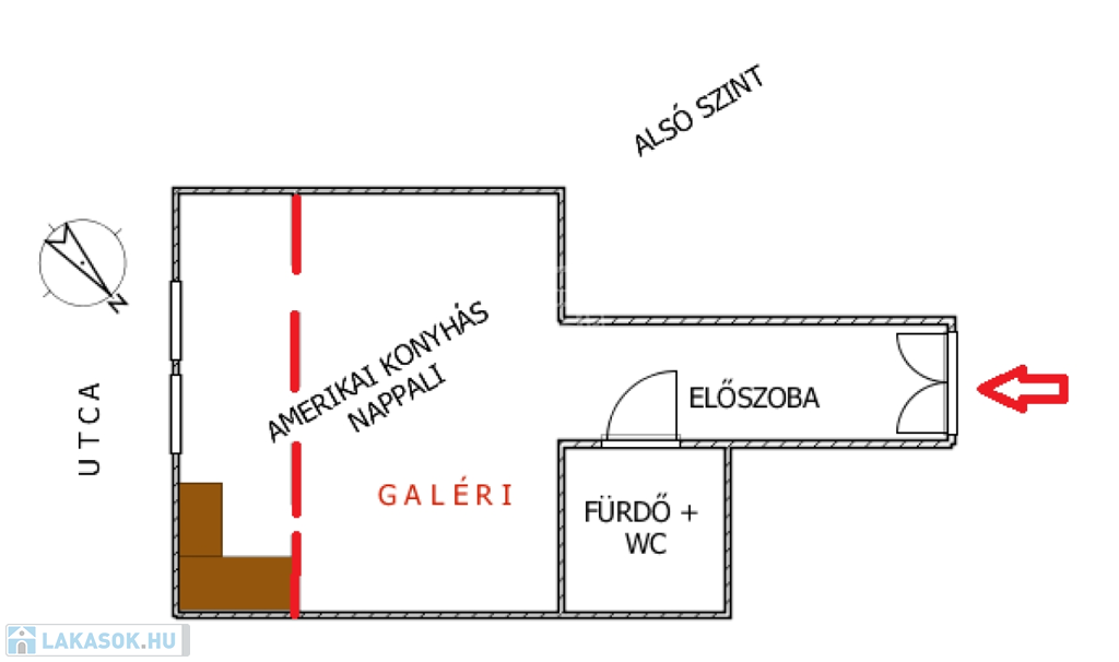 (Lakás tulajdoni lapon 45 négyzetméter és egyszobás.)