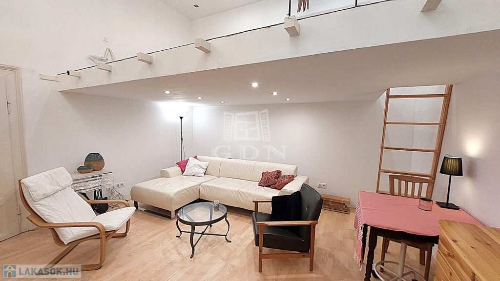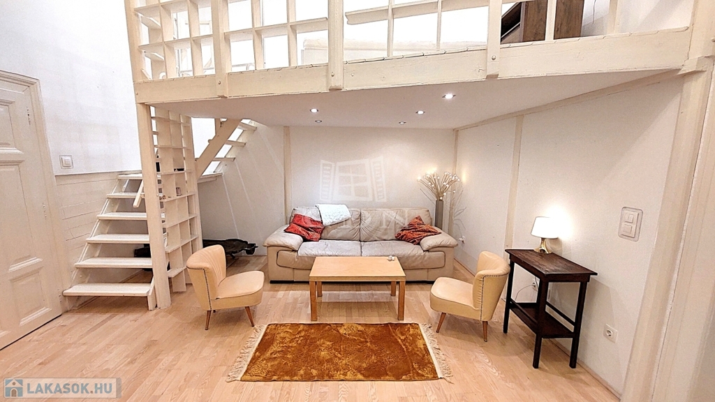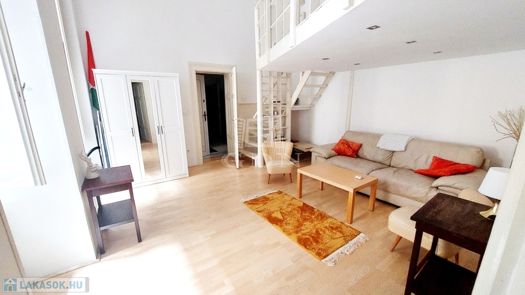 A Belgrád rakpart patinás, rendezett, kis lakóközösségű, az 1860-as években épült épületének első emeletén található ez a különleges, 64 m²-es (tulajdoni lapon 62 m²), két állógalériával (+20 m²) bővített lakás. Az ingatlan impozáns, 4,2 méteres belmagassága, valamint a galériák feletti 1,9 méteres belmagasság tágas, levegős érzetet biztosít.