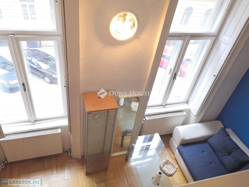 V. kerületben, a Nyugati pályaudvartól karnyújtásnyira, kívül-belül szép állapotú, liftes polgári társasház 1. emeletén eladó egy csendes utcára néző, 51m2-es, dupla galériás (a galéria területe nincs beleszámolva az 51m2-be, ezekkel együtt 82m2 terület áll rendelkezésre), cirkófűtéses, tágas tereket kínáló, jó állapotú lakás.