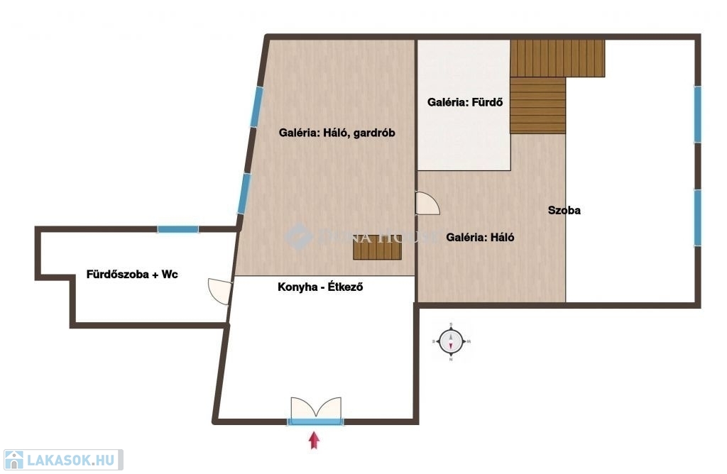 Az ingatlan alapterülete 51m2, egy hatalmas szobából, egy étkezős konyhából, és egy tágas fürdőszoba + wc-ből áll. Mind a szobából, mind a konyhából külön galériaszint nyílik - a szoba feletti részen egy hálóhelyiség, és ehhez kapcsolódó fürdőszoba+wc, míg a konyha feletti részen egy hálóhelyiség és egy gardróbszoba találhatóak. Az így összesen 82m2 teret kínáló, dupla komfortos lakás nagyobb térigényűek számára is ideális lakóteret kínál, bérbeadásra is ideális.