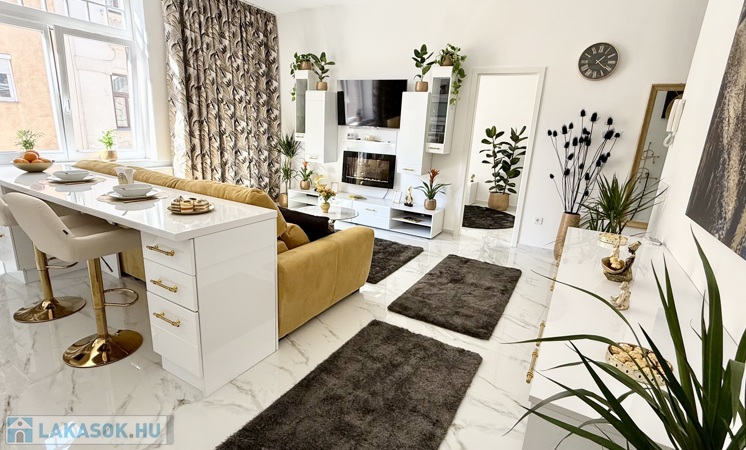 A lakás teljes körű műszaki (fűtés, víz, villany) korszerűsítésen és esztétikai felújításon (új külső-belső nyílászárók, új padlóburkolat, festés) esett át, háztartási gépekkel (mosó-szárítógép, mosogatógép, beépített sütő-főzőlap, páraelszívó, hűtő, mikrohullámú sütő, hűtő-fűtő klíma berendezés, elektromos kandalló, QLED TV, falra szerelhető kézi porszívó) teljesen felszerelt.
