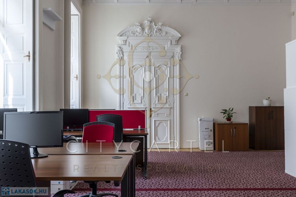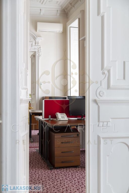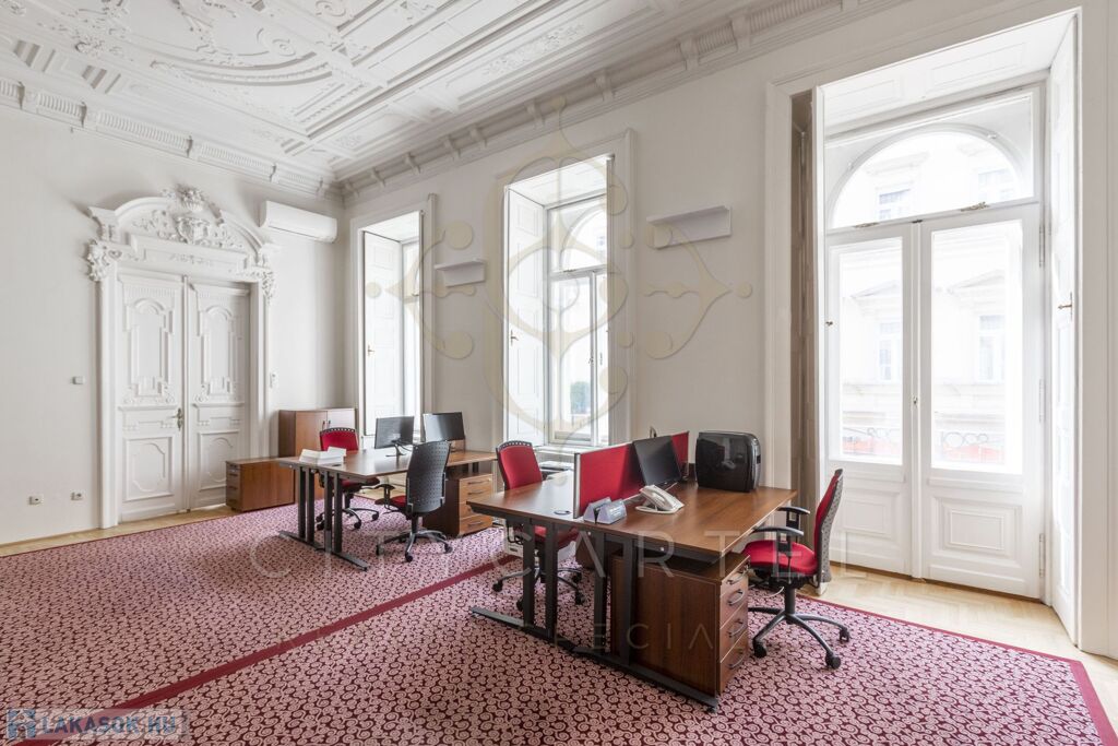 Az első emeleti, impozáns ingatlan rendkívül világos és tágas, kifinomult részletekkel díszített belső terekkel rendelkezik. Körbejárhatósága és két külön bejárata lehetőséget biztosít akár két szeparált iroda kialakítására is.