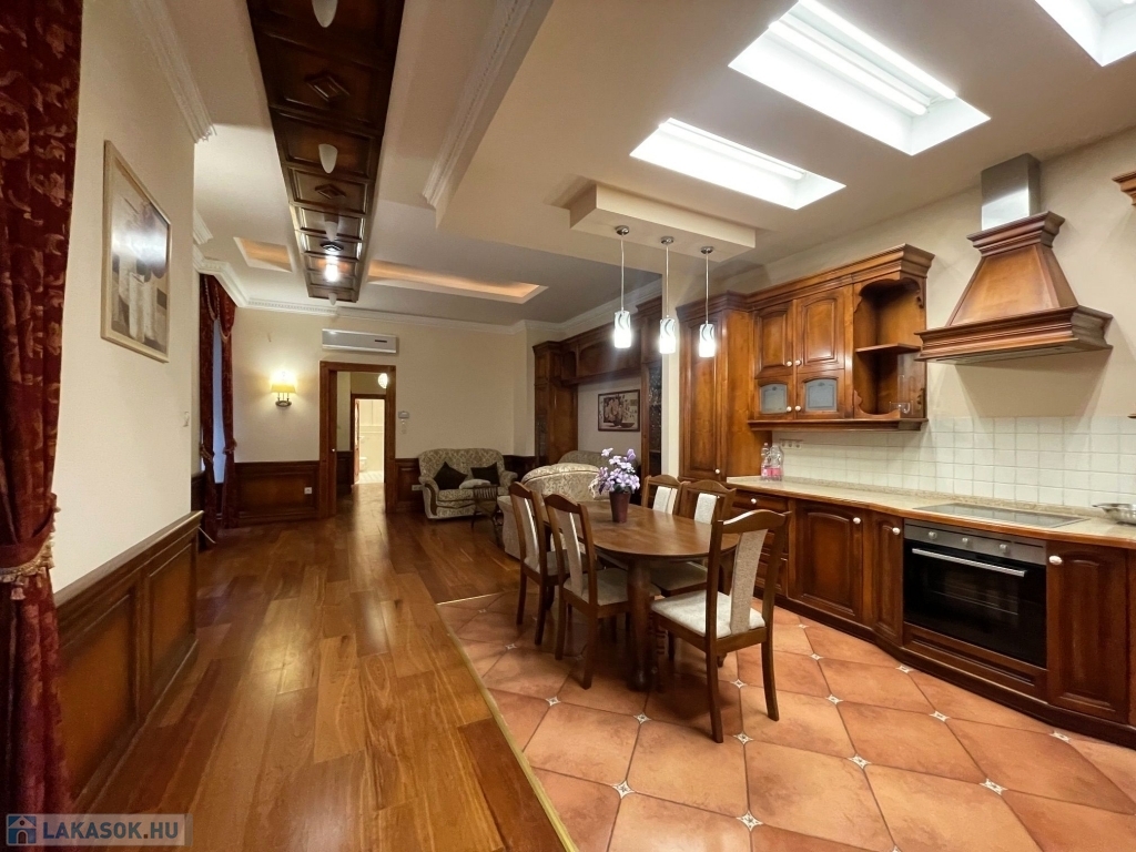 V. kerületben, az Október 6. utcában eladó egy 103 m2-es, amerikai konyhás nappali plusz hálószobás,1. emeleti lakás. Az ingatlan udvari nézetű, kimondottan csendes, fűtését gázcirkó készülék és hűtő-fűtő klíma biztosítja. A ház kívül-belül szép állapotú. A környék felszereltsége kimagasló. A közelben éttermek, kávézók, gyógyszertár, vásárlási lehetőség. A Duna-part, a Bazilika, a Parlament pár perces sétával elérhető. Az ingatlan tehermentes. Hétvégén, ünnepnapon is elérhető vagyok.
