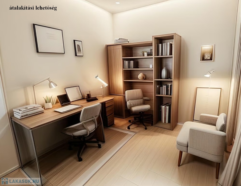 • Külön konyha kamrával, amely könnyen átalakítható és egybenyitható amerikai konyhás nappalivá