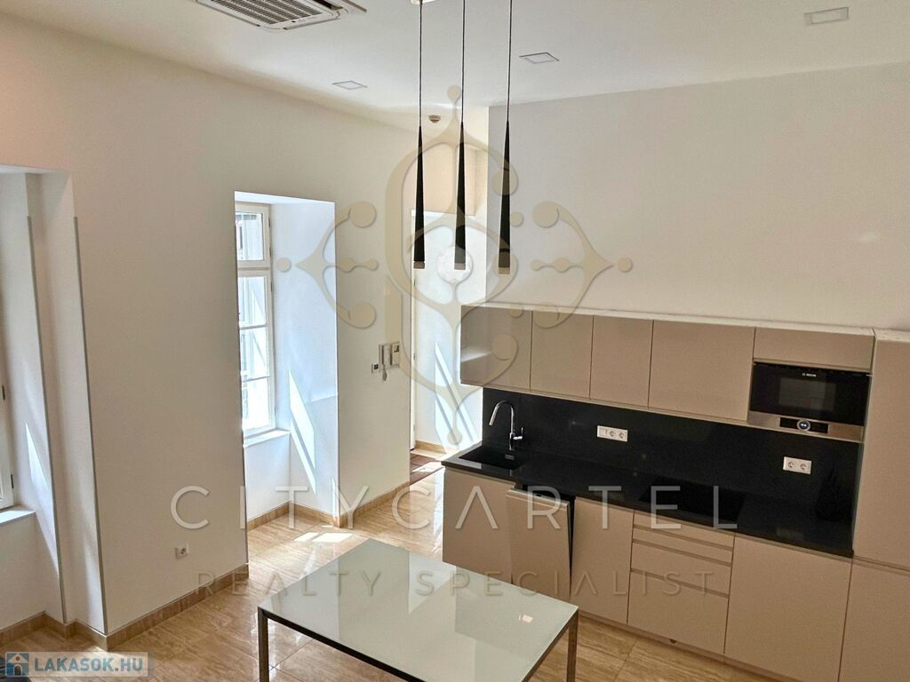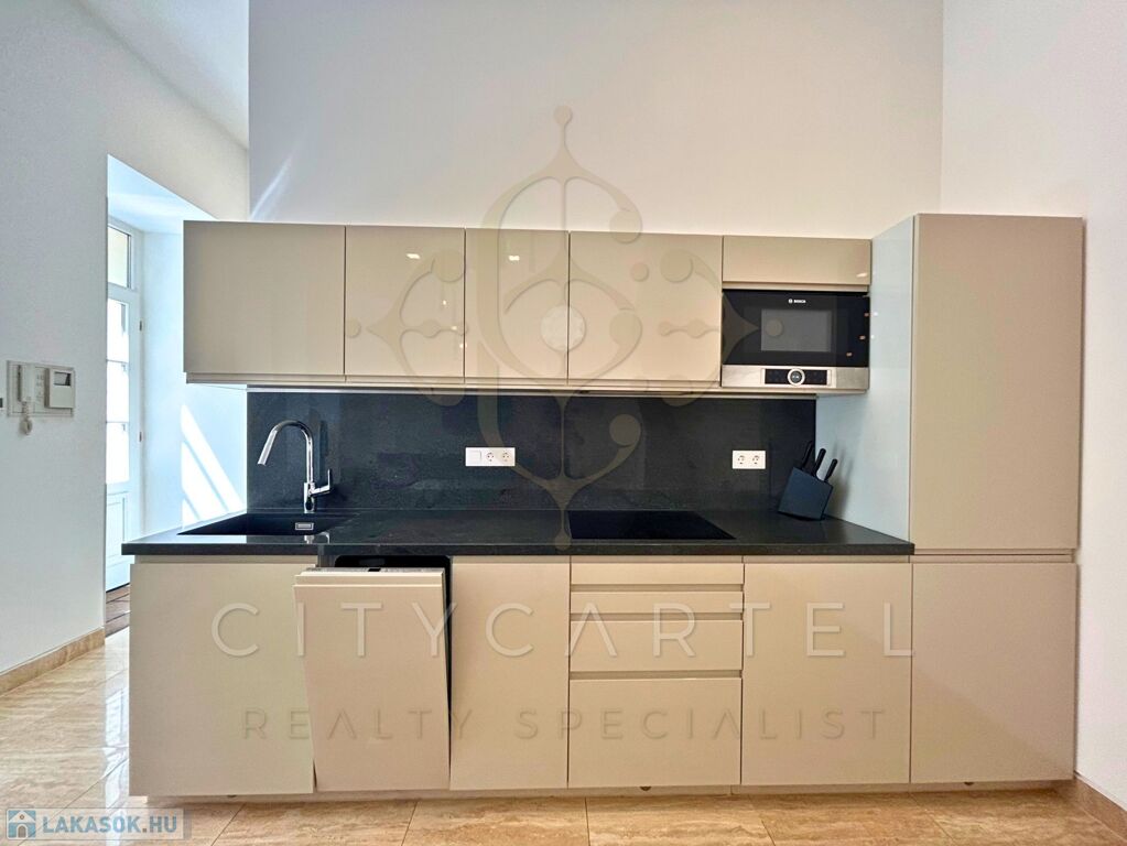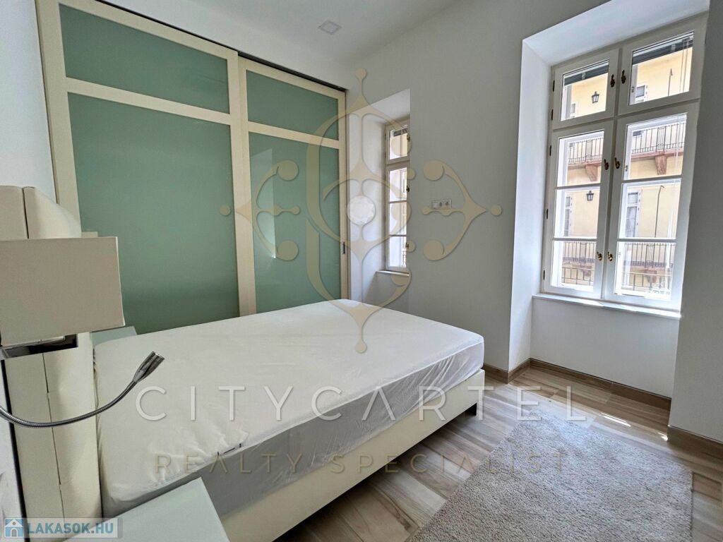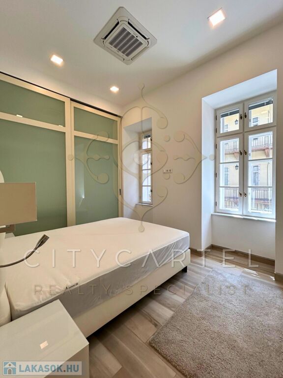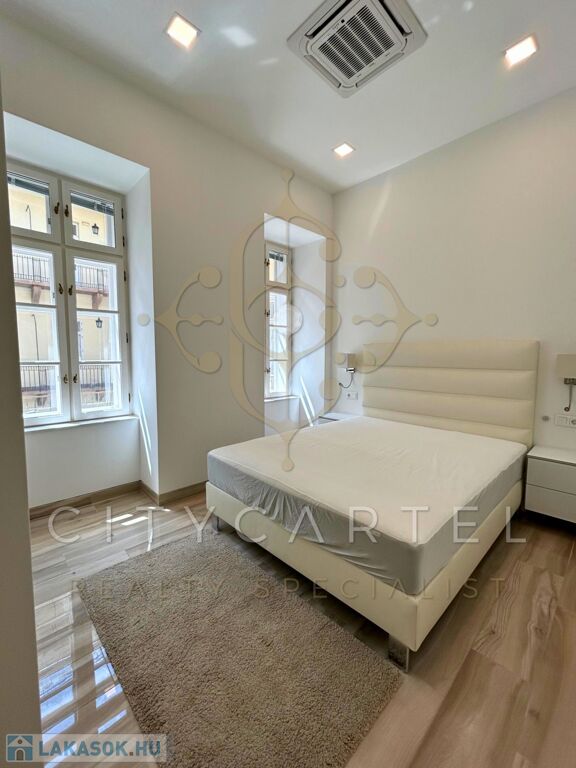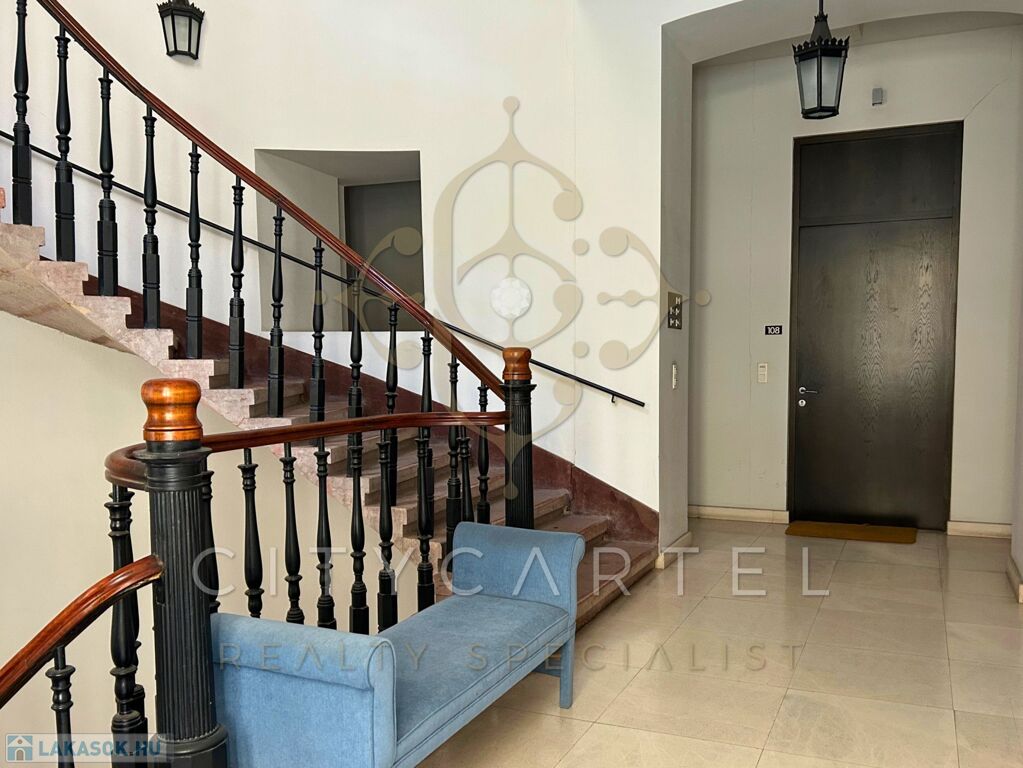 Az V. kerület egyik legnívósabb apartmanházában eladó egy 76 nm-es, belső kétszintes, amerikai konyhás nappali + 2 hálószobás, kiváló elosztású lakás, liftes épület 1. emeletén.