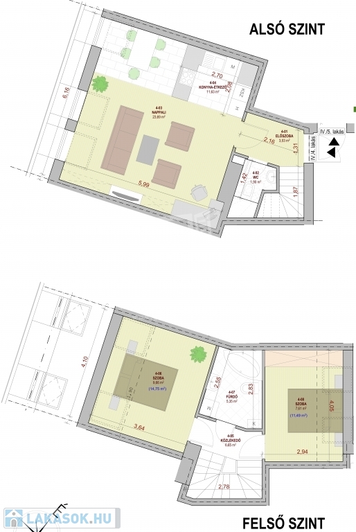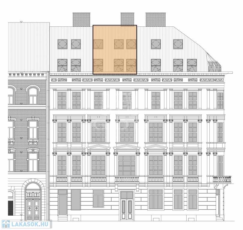 V. kerület Belvárosi részén, napfényes, magasemeleti luxus lakások kerülnek kialakításra a kivitelezéssel párhuzamosan pedig az épület korhűen megújul és egyidejűleg modern felvonó kerül beépítésre. Összesen 105m2 lakóterülettel rendelkezik ez a remek kéthálószobás, tetőteraszos ingatlan. A bejárati szinten a konyha nappali mellett egy vizes helyiség kerül kialkaításra, a hálószobák az élettértől jól elszeparálva az emeleten kapnak helyet a mellékhelyiségekkel, innen jutunk fel a privát 28m2-es tetőteraszra mely kizárólag ennek a lakásnak a kényelmét biztosítja. Az előrelátó tervezésnek köszönhetően nem lakószobából megközelíthető a tetőterasz így valóban szerves része lehet a lakásnak. A mellékelt látványtervek csupán egy, a számtalan megvalósítható lehetőség közül, jelen stádiumban még 100%-ban lehetséges a leendő tulajdonosok elképzeléseinek megvalósítása.