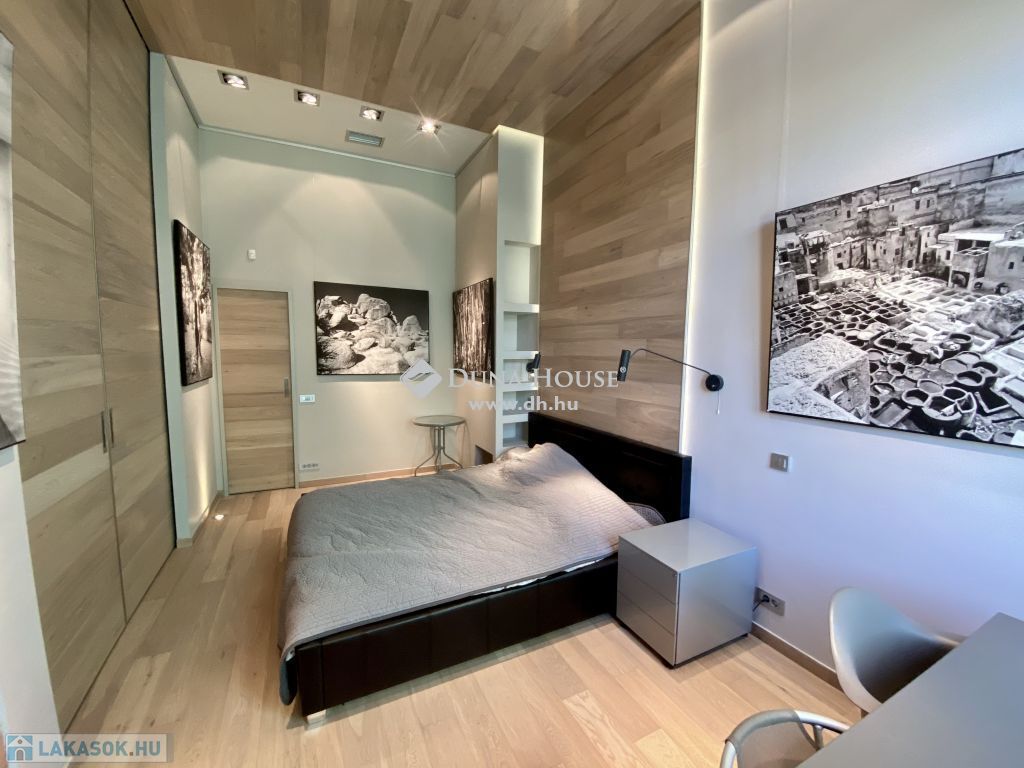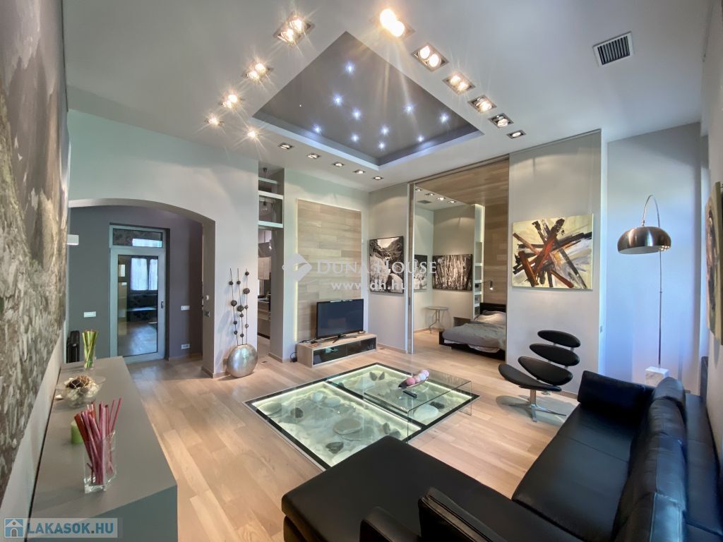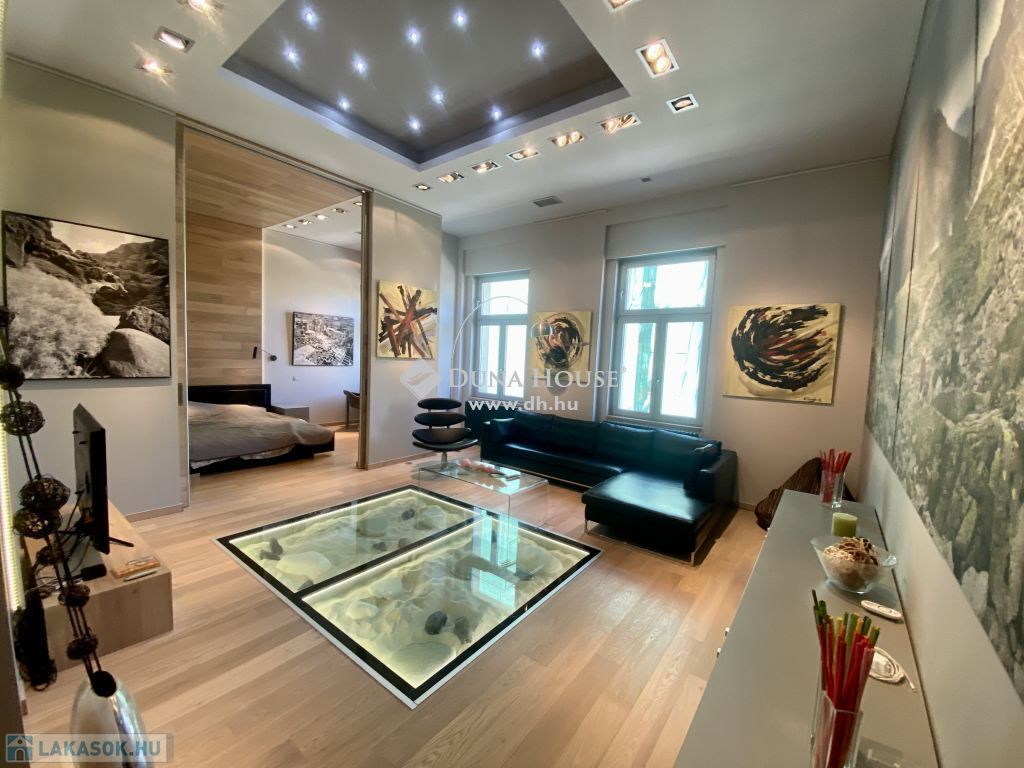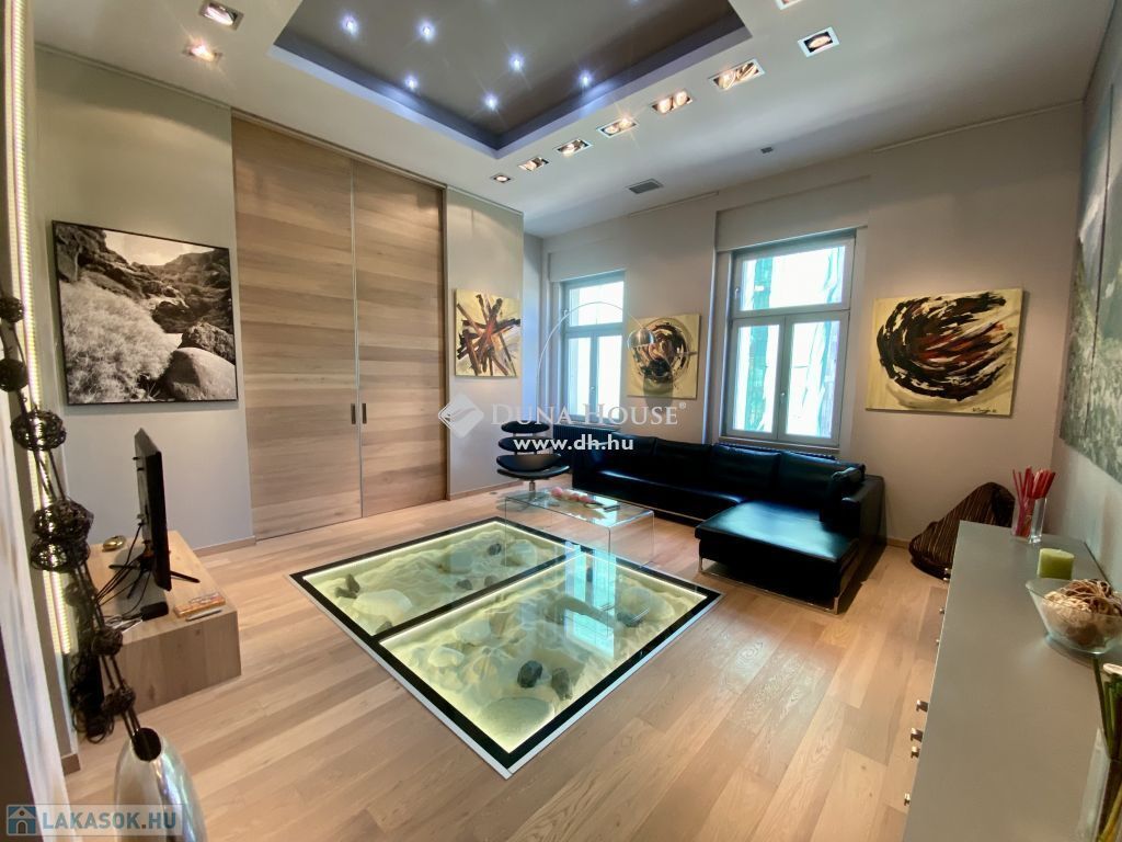 Magas minőségben és igényesen berendezett lakás Budapest szívében eladó.93 nm-es két hálószobával és két fürdőszobával rendelkező napfényes lakás teljesen bebútorozva kerül értékesítésre. Budapest szívében az 5. kerületben a József nádor téren található. A József nádor tér Budapest egyik legszebb részén helyezkedik el magasan infsastukurált boltok, közlekedés és intézmények tekintetében is.A lakásban két hálószoba található. A nagyobbik szoba a nappaliból és a fürdőszobából is megközelíthető tolóajtókon keresztül. A kisebbik szobában teljes értékű álló galéria található alatta beépített tárolóval. Megtalálható továbbá két fürdőszoba az egyik káddal és szaunával szerelve a másik zuhanyzóval. A nagyobbik fürdőszoba felett álló galéria található beépített szekrényekkel. A nappali napfényes és tágas ablakai a Hild térre néznek különlegessége a padlóba süllyesztett vitrin. A konyha gépesített és alig használt. Az ablakokon elektromos redőnyök vannak. A lakás riasztó rendszerrel szerelt, két bejárati ajtóval rendelkezik ezeken kívül minden ajtó tolóajtó.Amennyiben felkeltette az érdeklődését ezt a különleges lakás Budapest szívében keressen bizalommal.