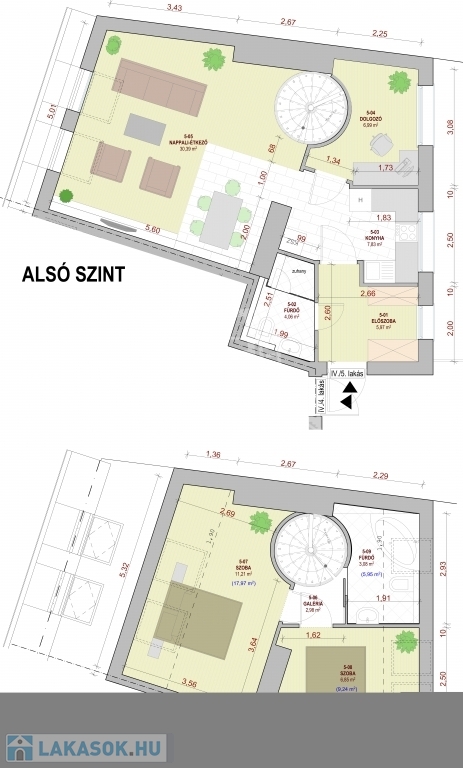 V. kerület Belvárosi részén, napfényes, magasemeleti luxus lakások kerülnek kialakításra a kivitelezéssel párhuzamosan pedig az épület korhűen megújul és egyidejűleg modern felvonó kerül beépítésre. Összesen 121m2 lakóterülettel rendelkezik ez a remek kéthálószobás, tetőteraszos ingatlan. A bejárati szinten a konyha, dolgozó és nappali mellett egy vizes helyiség kerül kialkaításra, a hálószobák az élettértől jól elszeparálva az emeleten kapnak helyet a mellékhelyiségekkel, innen jutunk fel a privát 30m2-es tetőteraszra mely kizárólag ennek a lakásnak a kényemét biztosítja. Az előrelátó tervezésnek köszönhetően nem lakószobából megközelíthető a tetőterasz így valóban szerves része lehet a lakásnak. A mellékelt látványtervek csupán egy, a számtalan megvalósítható lehetőség közül, jelen stádiumban még 100%-ban lehetséges a leendő tulajdonosok elképzeléseinek megvalósítása.