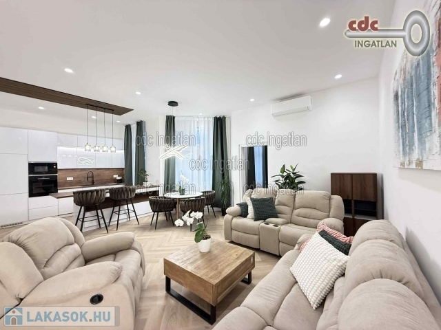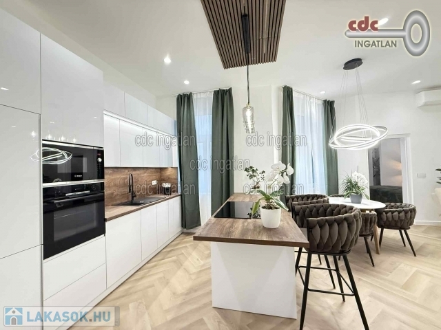 Eladó Budapest szívében egy exkluzív luxuslakás! Megvételre kínálunk a Belváros egyik legpatinásabb utcájában, az V. kerületi Papnövelde utcában egy teljes körűen, prémium minőségben felújított, 91 m²-es, 3 szobás, napfényes lakást. Az ingatlan III. emeleti, nagyon világos és csendes, amerikai konyhás nappali, tágas és elegáns tér + 2 külön nyíló szoba, gardróbszoba, 2 külön fürdőszoba a maximális kényelemért. Cirkófűtés, padlófűtés, komfort minden évszakban, elektromos redőny és szúnyogháló minden ablakon. A teljes körű felújítás során belsőépítész által megálmodott, egyedi enteriőr, prémium minőségű anyaghasználat, igényes kivitelezés. Rendezett, liftes társasház, kulturált lakóközösséggel. Üveg érintős kapcsolók, okosotthonnal felszerelt wifin keresztül irányítható fények, a szobákban Polár hűtő-fűtő wifi-s klíma, Mosókonyha gépesített: Bosch mosógép és szárító, asztalos által készített minőségi egyedi beépített szekrények és konyhabútor, Bosch hűtő, mosogatógép, sütő és mikró, Klarstein főzőlap és szagelszívó. Minőségi szaniterek, UV és hő ellen felfóliázott, 3 rétegű ablakok, amelyek privát szférát biztosítanak a tükör hatásnak köszönhetően. A lakás ideális választás mindazoknak, akik nem szeretnének kompromisszumot kötni: elegancia, modern kényelem és nagypolgári enteriőr, belvárosi életstílus egy helyen. Irányár: 269.000.000 Ft. Ez a lakás nem csupán otthon, hanem életstílus is! Ne hagyja ki ezt a ritka lehetőség egy ilyen színvonalú ingatlanra Budapest történelmi belvárosában!