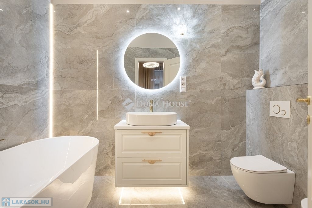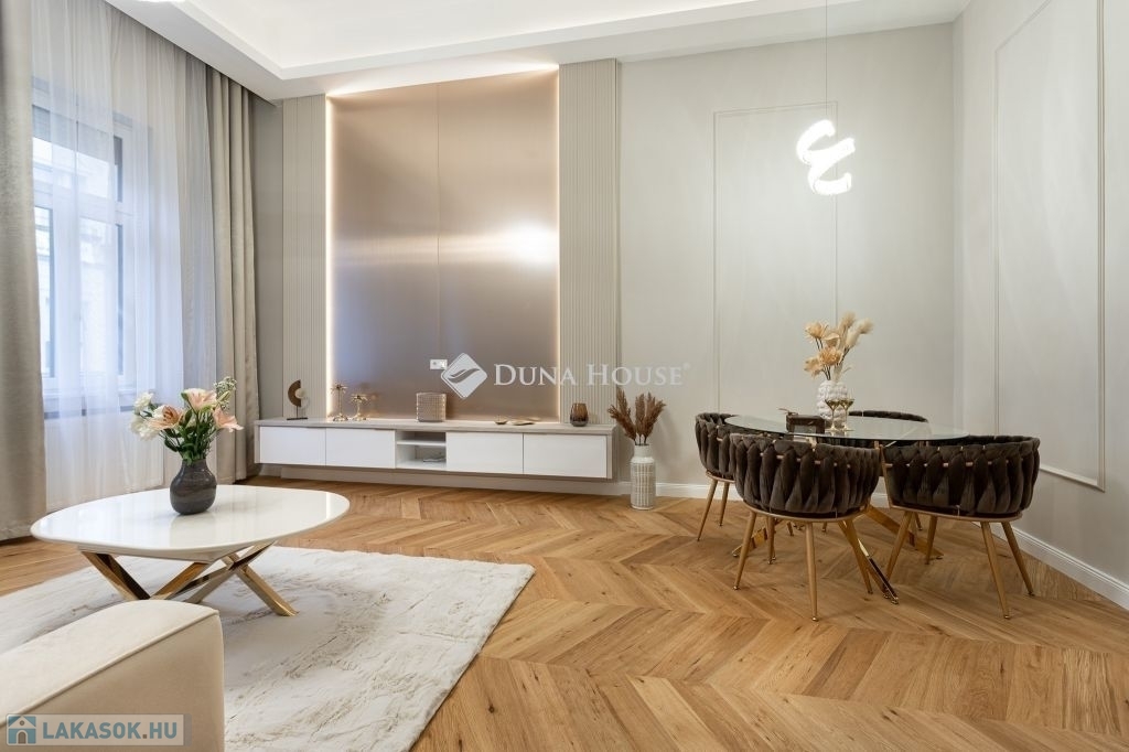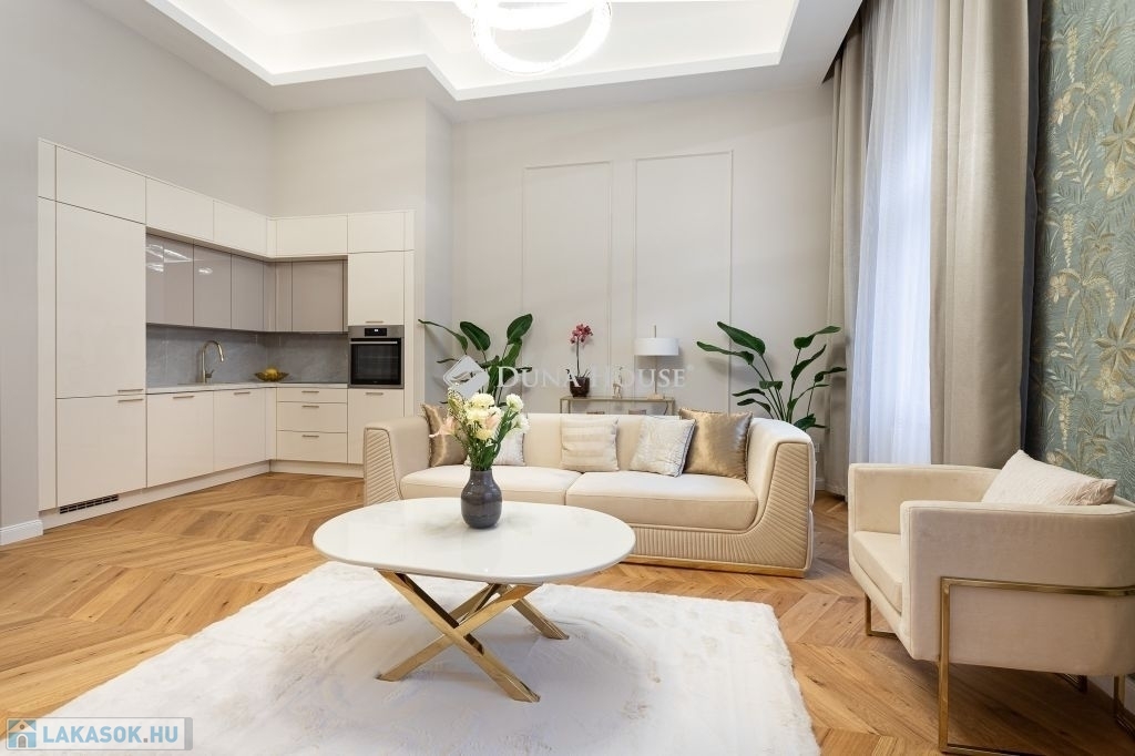 In the heart of Budapests 5th district, just a few steps from the Danube, this 86 m² luxury apartment is now for sale. Featuring a spacious living room, two bedrooms (each with its own bathroom), and a walk-in wardrobe, this home perfectly blends classic grandeur with modern sophistication.