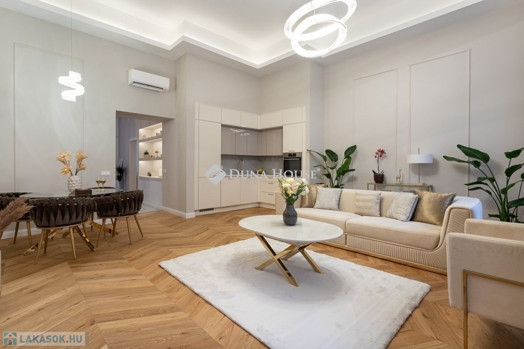 Az V. kerület legkeresettebb részén, a Duna-part közelében kínálom megvételre ezt a 86 m²-es, nappali + 2 hálószobás, két fürdőszobás, gardróbos luxuslakást, amely a klasszikus polgári hangulatot ötvözi a modern eleganciával.