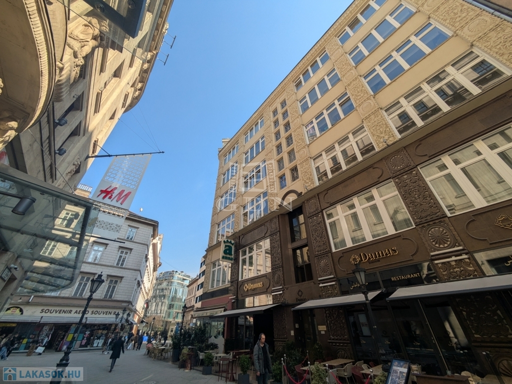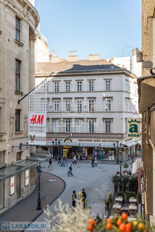 ELADÓ Budapest belvárosában, az V. kerület frekventált részén, a Vörösmarty tér és a Vígadó tér közelében, liftes, rendezett társasház 2. emeletén egy 85 m²-es, 3 szobás, két fürdőszobás, erkélyes, napfényes, délnyugati tájolású, utcára néző saroklakás.