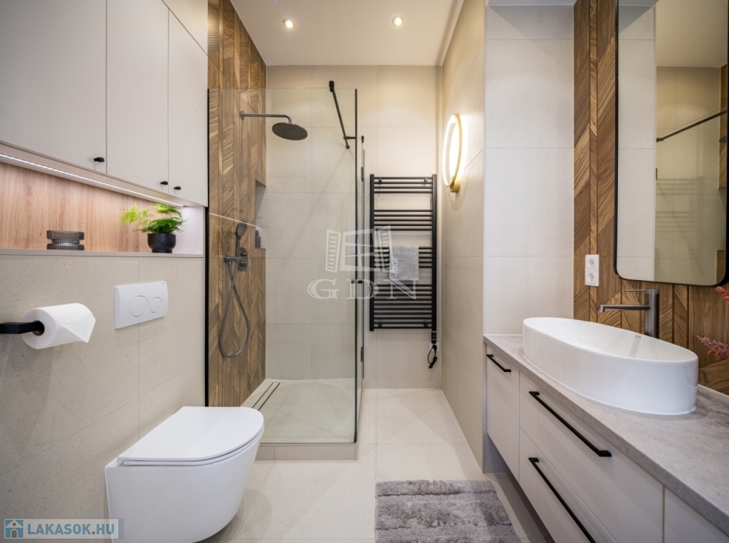 A lakás teljes körűen felújított, modern belső terekkel, a funkcionalitás és a minőségi kivitelezés harmonikus kombinációját kínálja.
