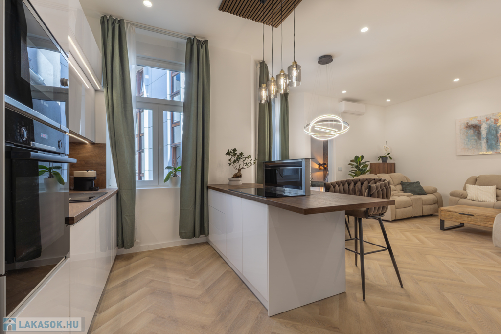 In the heart of Budapest, just steps from Egyetem Square, a fully renovated, luxury 91 m² apartment is for sale in the prestigious 5th district.