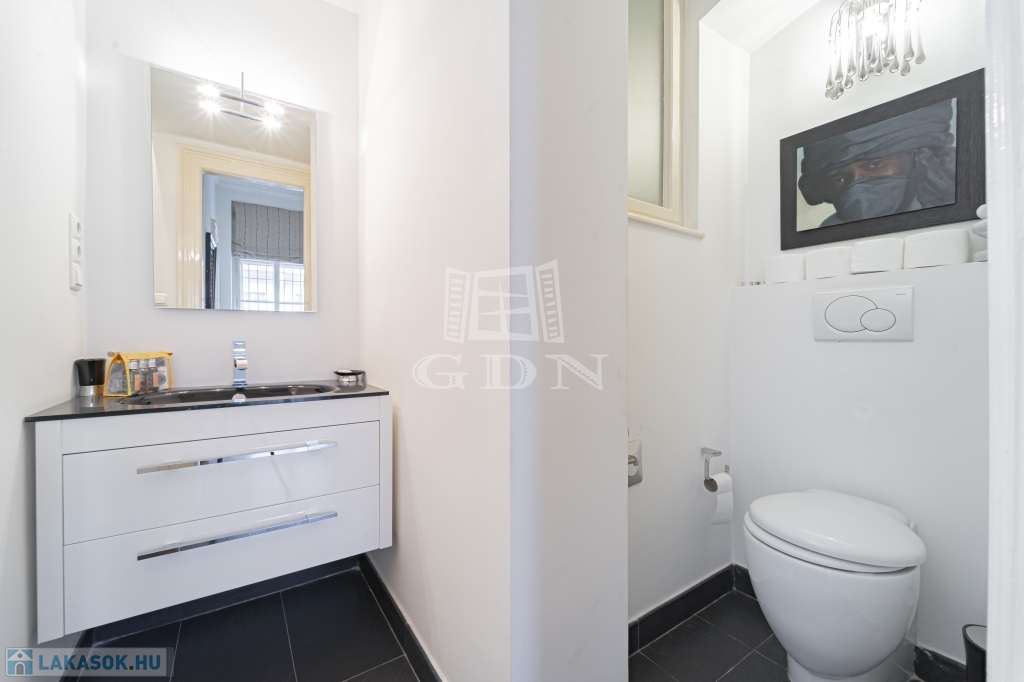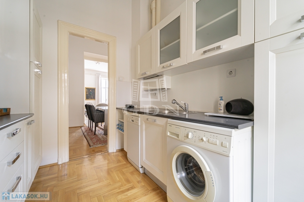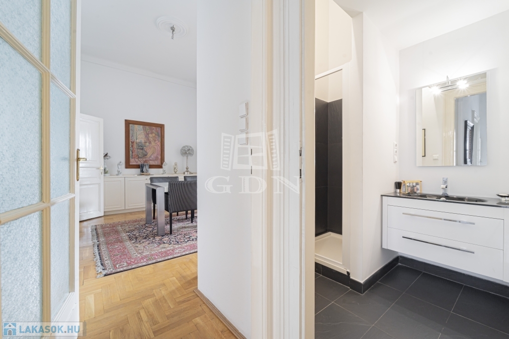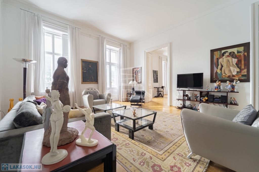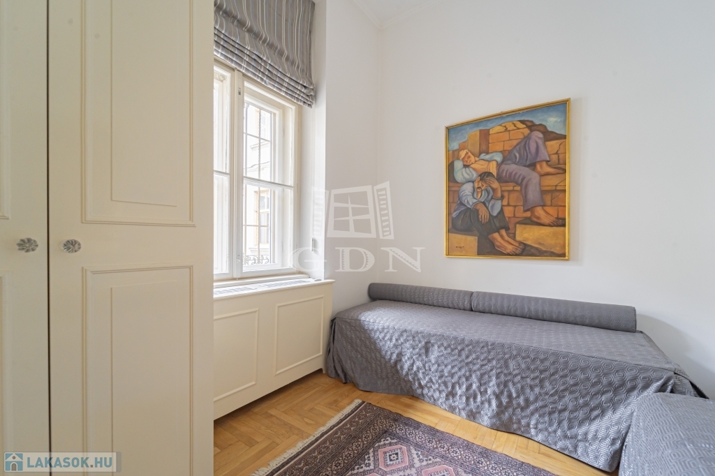 Most megvásárolhat egy darabot a világörökség részéből, és minden reggel az erkélyéről gyönyörködhet a csodás kilátásban. A lakás zárt lépcsőházból megközelíthető. Remek elrendezésnek köszönhetően két hálószobának nincs közös fala, jelenleg is két fürdőszobával rendelkezik. A konyha mellett a hallban került kialakításra az étkező mely egy négy szárnyú ajtó választ el a nappalitól. Négy ablaka néz a Dunára, három pedig a belső frontra. A lakás klimatizált, a kültéri egységek a társasház jóváhagyásával kerültek elhelyezésre. A lakószobákban eredeti, felújított fa parketta található. Ha felújítana, átalakítana ez az ingatlan remek alapot biztosíthat egy három háló szobás lakás kialakítására.