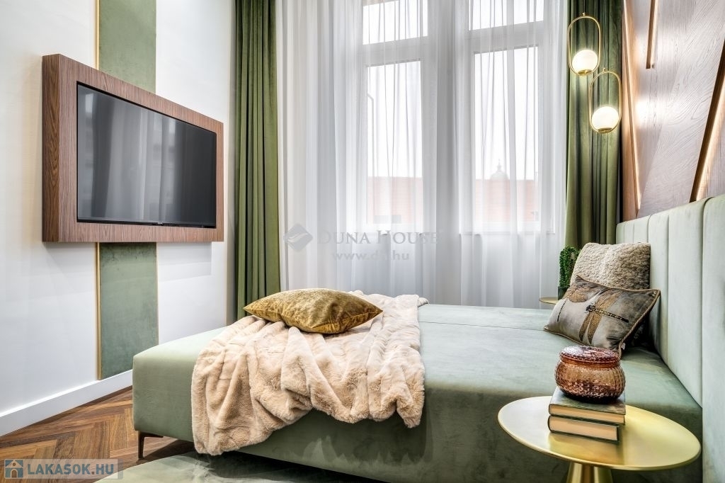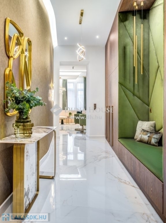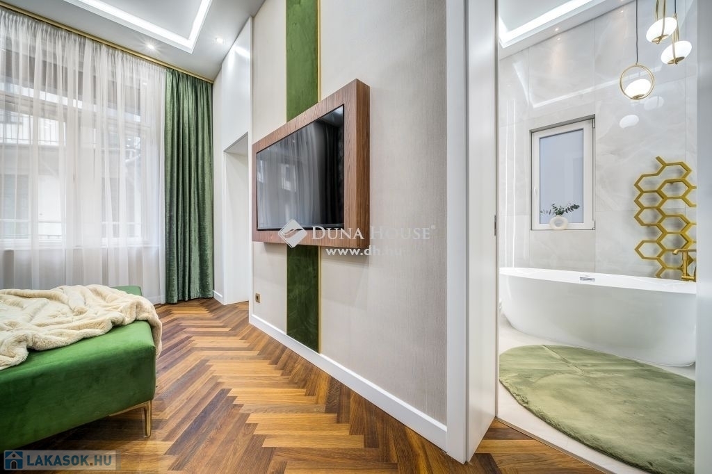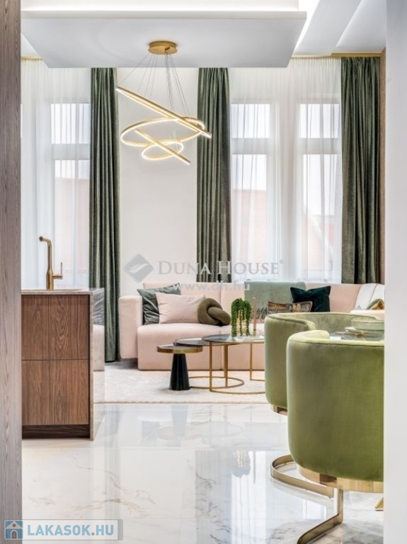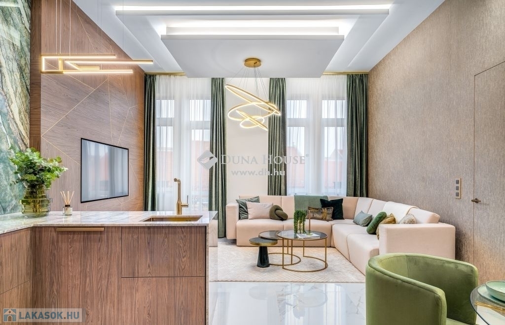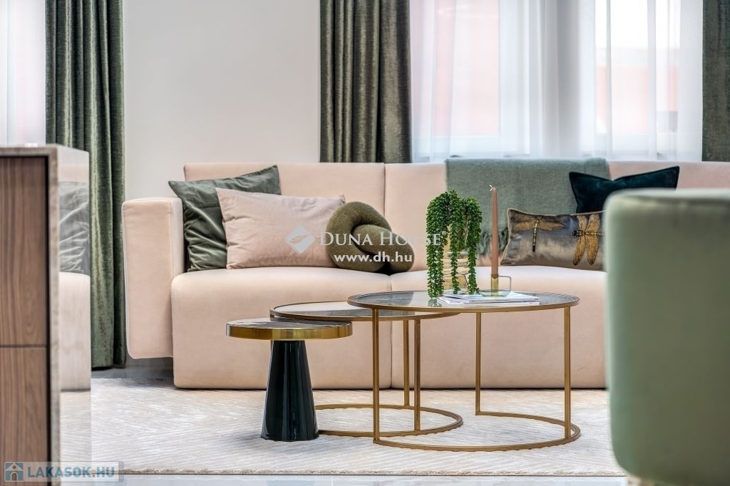 Luxus Otthon a Szomory Dezső Téren – Kivételes Kilátással és Kényelmes ElrendezésselA piacon egyedülálló lehetőséget kínálunk: egy exkluzív, prémium lakást, amely tökéletes harmóniában ötvözi a modern kényelmet és az elegáns dizájnt. A lakás egyedülálló dél-keleti tájolással rendelkezik, lenyűgöző panorámával a Szomory Dezső térre és a Danaidák kútjára, egy olyan környéken, amely a város szívében nyújt nyugodt, mégis élénk atmoszférát.Az ingatlan főbb jellemzői:Alapterület95 m² + 7 m² erkély, amely tökéletes helyszínt biztosít a pihenéshez és a kültéri élményekhez.Elrendezés: A lakásban egy tágas nappali, 2 hálószoba, 2 fürdőszoba (mindegyik külön WC-vel), egy különálló WC és egy elegáns előszoba található.Prémium kivitelezésA 2024-es homlokzati felújítást követően az épület modern és esztétikus megjelenést kapott, míg az ingatlan belső terét a legmagasabb minőségű anyagok és design jellemzik.Fűtés és gépészetA lakás gáz kombi cirkóval, teljes padlófűtéssel és design törülközőszárítókkal biztosítja a maximális komfortot. A fürdőszobák Wellis káddal, Grohe csaptelepekkel és Arezzo design szaniterekkel vannak felszerelve.Minőségi burkolatokhelyiségeket olasz prémium burkolatok (Lafaenza, Vallelunga, Infinity, Naxos, Monocibec) és Bauwerk Unopark enyhén füstölt tölgy fapadló díszíti.Kültéri nyílászárók: A három rétegű, hőszigetelt üveggel szerelt műanyag nyílászárók kiváló hő- és hangszigetelést biztosítanak.Beltéri nyílászárók: Egyedi prémium bútor- és üveg ajtók, amelyek eleganciát és modern stílust adnak a belső térnek.Prémium felszereltségBeépített konyhai gépek: AEG készülékek (hűtőszekrény, indukciós főzőlap, mikrohullámú sütő, sütő, mosogatógép, borhűtő) biztosítják a magas szintű konyhai élményeket.Szórakozás és kényelem: A lakás 3 db, 4K felbontású Samsung TV-vel (65 és 55) és AEG mosógéppel, szárítógéppel van felszerelve.Design és dekoráció: A lakás egyedi tervezésű szagelszívóval és Fisher design hűtő-fűtő klímaberendezésekkel is rendelkezik, hogy minden igényt kielégítsen. A lakás díszítése a Kare, Zara Home és más prémium márkák bútorai és kiegészítői révén éri el a tökéletes összhangot.További információk:Az épület nem műemlék jellegű, 78 albetéttel rendelkezik (lakás, iroda, üzlet).Közös költség: 23.685 Ft/hó, amely tartalmazza a víz és csatorna díját is. A felújítás során egyedi vízórát építettek be.Ár:Lakás ára: 700.000 EURBútorzat és berendezés ára: 65.000 EURA bútorok megvásárlása kötelező!Ez a különleges ingatlan egyedülálló lehetőséget kínál mindazok számára, akik a luxus és a kényelem iránti igényüket a legmagasabb szintre emelnék.Ne hagyja ki ezt a páratlan ajánlatot, és lépjen kapcsolatba velem még ma!