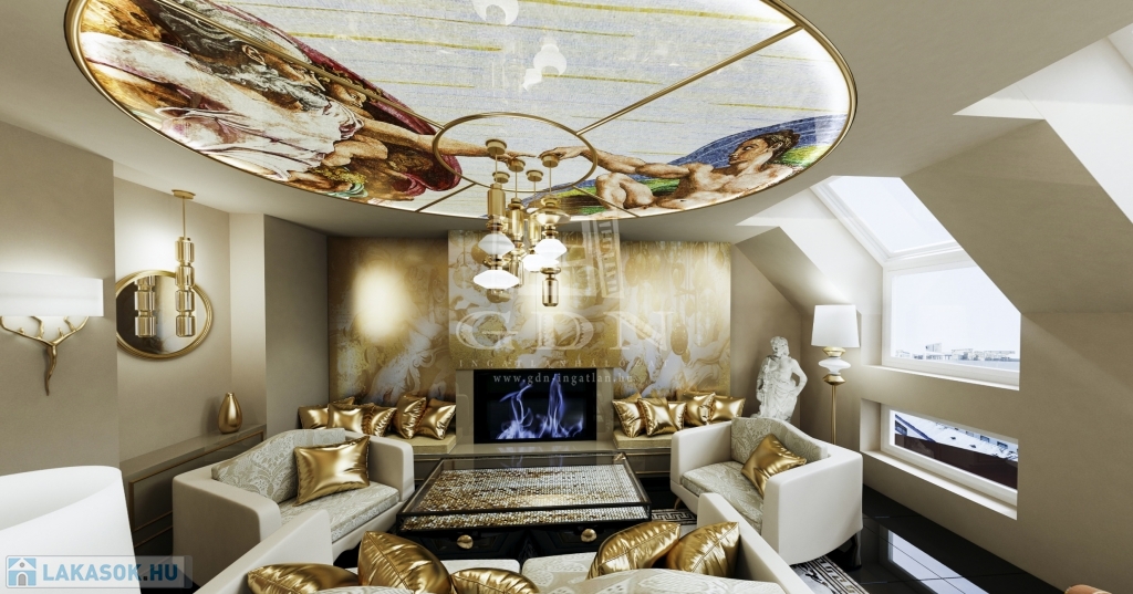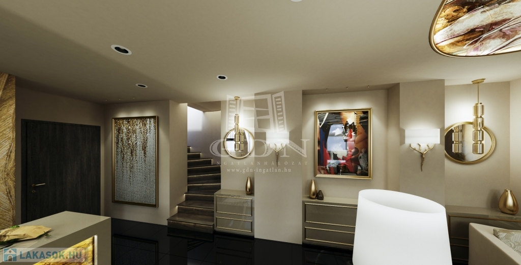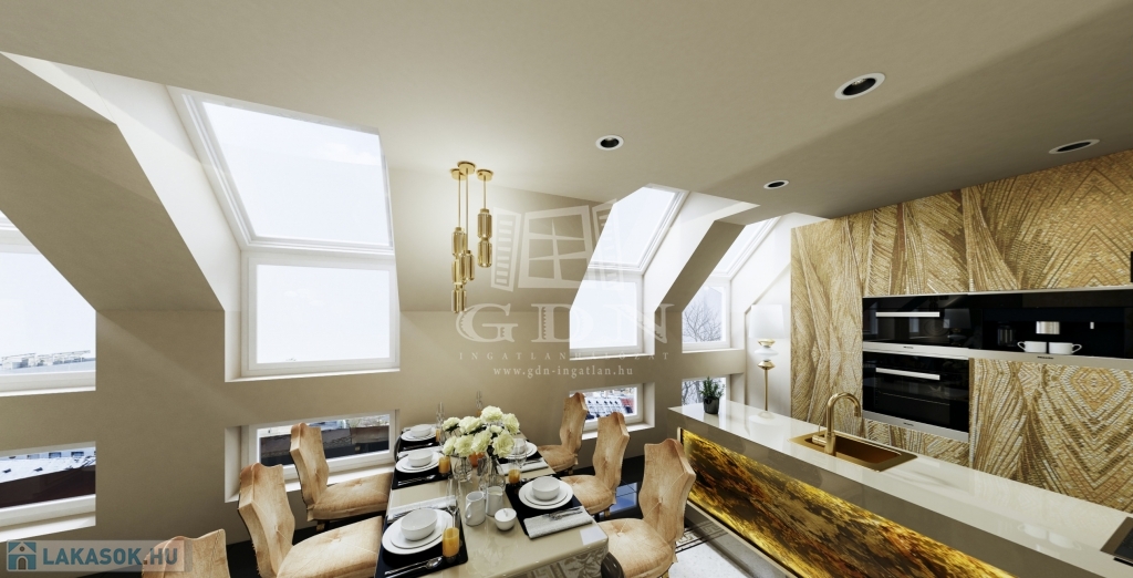 V. kerület Belvárosi részén, napfényes, magasemeleti luxus lakások kerülnek kialakításra a kivitelezéssel párhuzamosan pedig az épület korhűen megújul és egyidejűleg modern felvonó kerül beépítésre. Összesen 174m2 lakóterülettel rendelkezik ez a remek három hálószobás, tetőteraszos ingatlan. A bejárati szinten a konyha nappali mellett egy vizes helyiség kerül kialkaításra, a hálószobák az élettértől jól elszeparálva az emeleten kapnak helyet a mellékhelyiségekkel, innen jutunk fel a privát 28m2-es tetőteraszra mely kizárólag ennek a lakásnak a kényemét biztosítja. Az előrelátó tervezésnek köszönhetően nem lakószobából megközelíthető a tetőterasz így valóban szerves része lehet a lakásnak. Méretéből adódoan akár egy családnak megfelelő lakóhelyet biztosíthat. A mellékelt látványtervek csupán egy, a számtalan megvalósítható lehetőség közül, jelen stádiumban még 100%-ban lehetséges a leendő tulajdonosok elképzeléseinek megvalósítása.