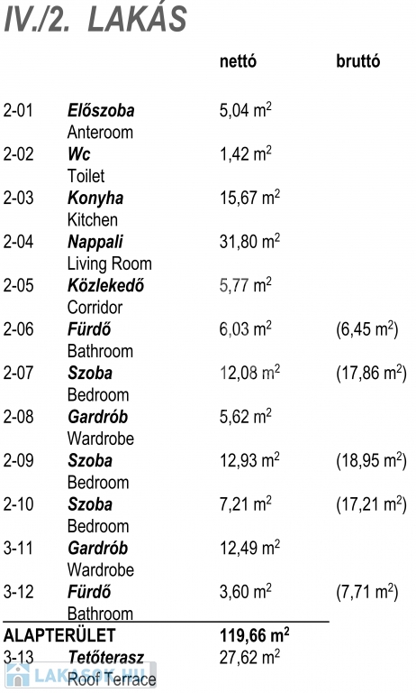 A 147m2-es értékesítési alapterület tartalmazza a nettó 120m2-es lakótéren felül 190cm alatti területek (26m2) és a terasz (28m2) területének 50%-át.