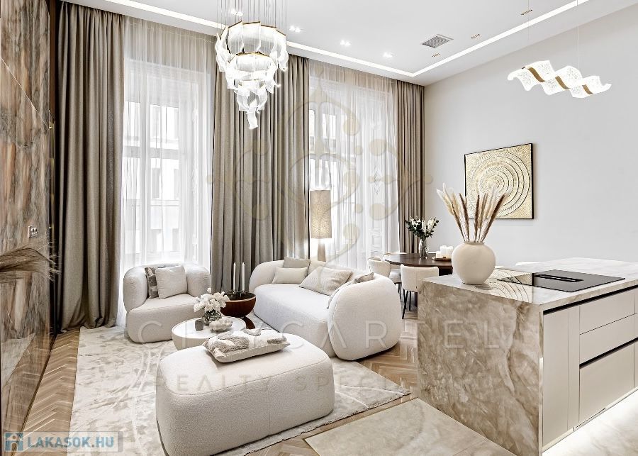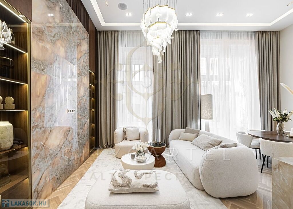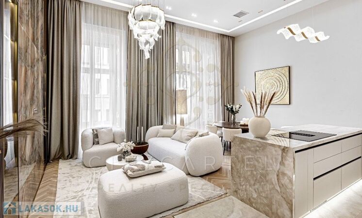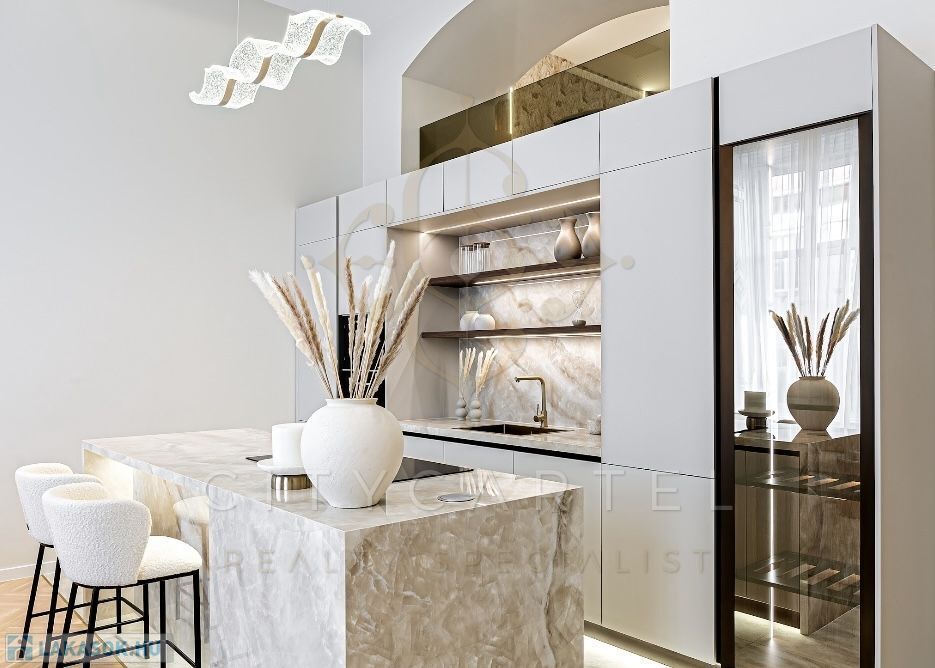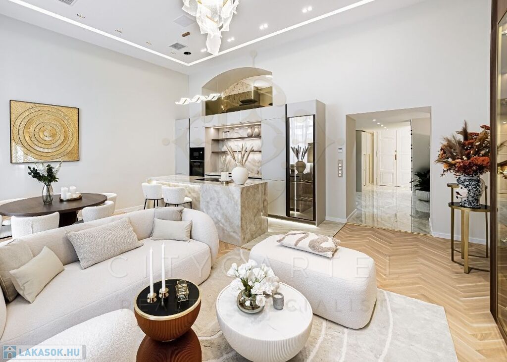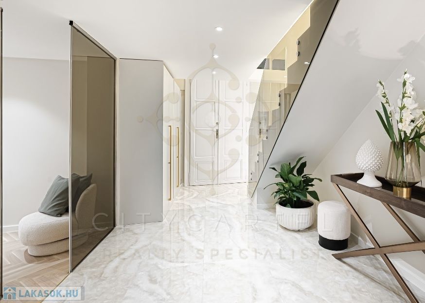 Az V. kerület szívében, presztízsértékű utcában, 96 nm-es, kétszintes, nappali + 2 hálószobás + 2 fürdőszobás luxuslakás, amely minden részletében a minőséget, az eleganciát és a modern otthonérzetet képviseli.