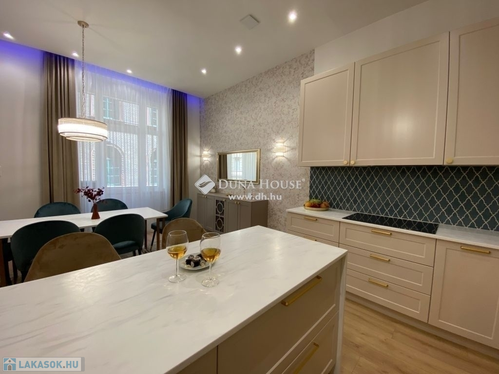 Eladó luxuslakás a Belgrád rakparton, 141 m2-en !Budapest egyik kedvelt részén, a Belgrád rakparton kínálunk megvételre egy teljes körűen felújított, prémium minőségű , 141m2-es luxuslakást! A lakás elrendezése kiváló: a tágas nappali-konyha-étkező központi helyet foglal el, míg a három hálószoba és a két fürdőszoba a maximális kényelmet szolgálja. Ideális választás családoknak, üzletembereknek, illetve befektetésre is, hiszen lokalizációja és minősége kiemelkedő értékállóságot biztosít.A teljes körű felújítás során a födém cseréje megtörtént, modern padlófűtés került kialakításra, amely optimális hőmérsékletet biztosít minden helyiségben. Energiatakarékos mennyezeti hűtőrendszer a kellemes nyári hőmérséklet érdekében. Modern szellőztető rendszer biztosítja az állandó, egészséges belső klímát. Beépített vízlágyító rendszer, az élettartam növelése és a vízkőképződés minimalizálása érdekében.Vadonatúj, prémium minőségű fa nyílászárók, amelyek kiváló hő- és hangszigetelést garantálják. Árnyékolását elektromos redőnyök biztosítják. Teljesen megújított víz-, villany- és fűtés rendszer. Korszerű okos otthon.Élje át a belvárosi életstílust a Duna partján, egy exkluzív otthonban!További információért és megtekintésért várom megkeresését!