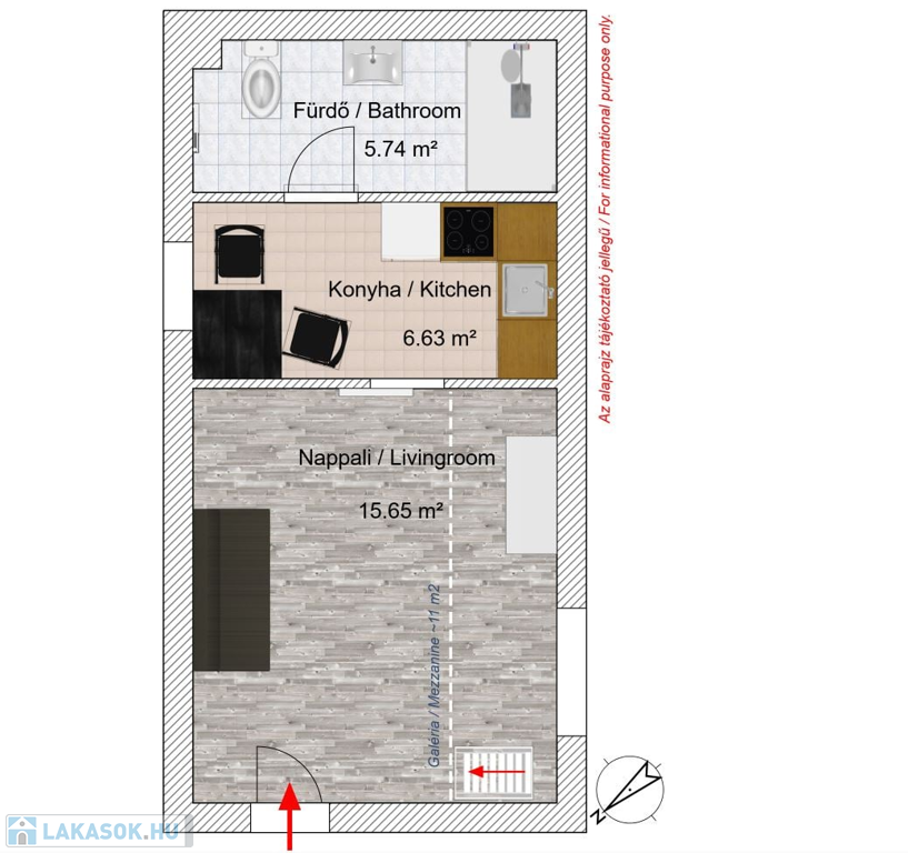 Alapterület: 28 m² + 7,5 m2 fekvő galéria