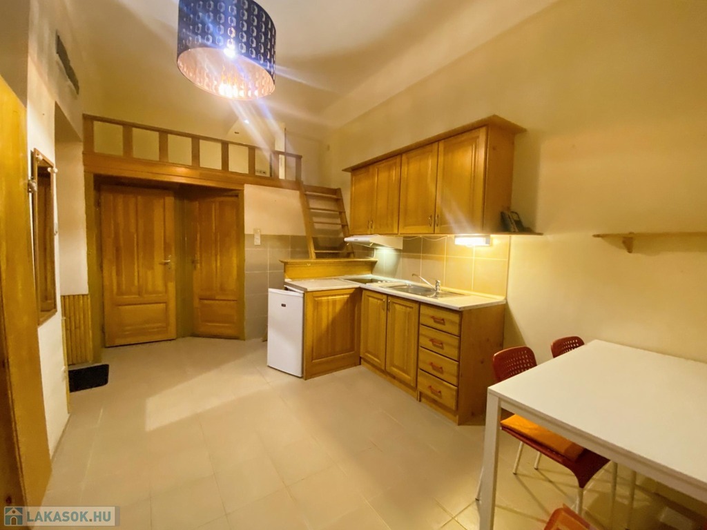 a bejáratnál egy barátságos nappali-konyha található, galériával, amely alkalmas tárolásra vagy akár egy plusz hálórész kialakítására is,
