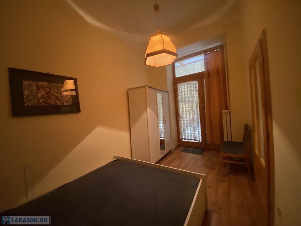 tágas hálószoba, amelyből közvetlen kijárat nyílik egy kis belső udvarra.
