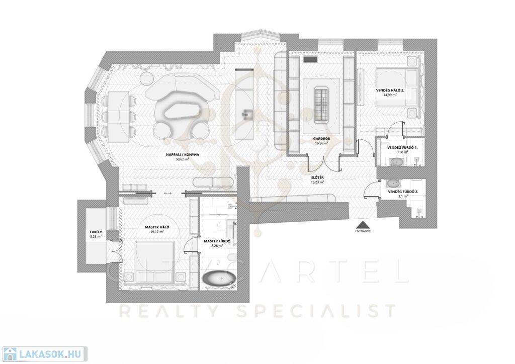 Budapest szívében, az V. kerületben várja új tulajdonosát ez a lenyűgöző, luxus téglalakás, amely egyedülálló lehetőséget kínál a városi élet szerelmeseinek. Az ingatlan 140 négyzetméter alapterülettel rendelkezik, így bőséges teret biztosít a mindennapi kényelmet és stílust keresők számára.