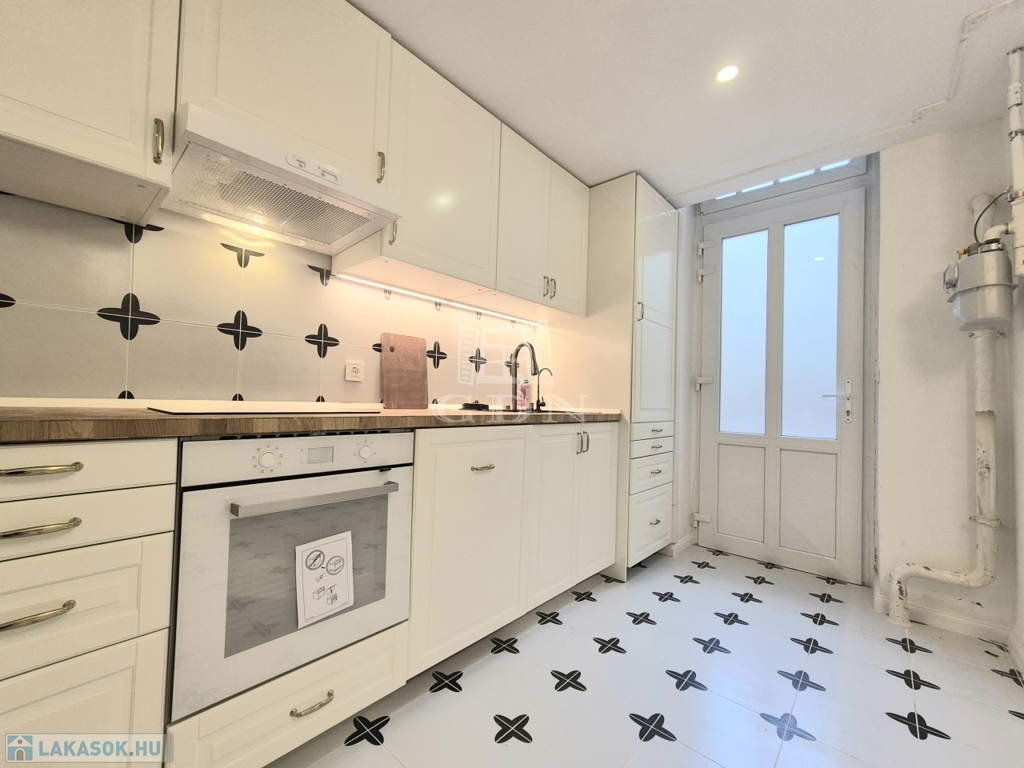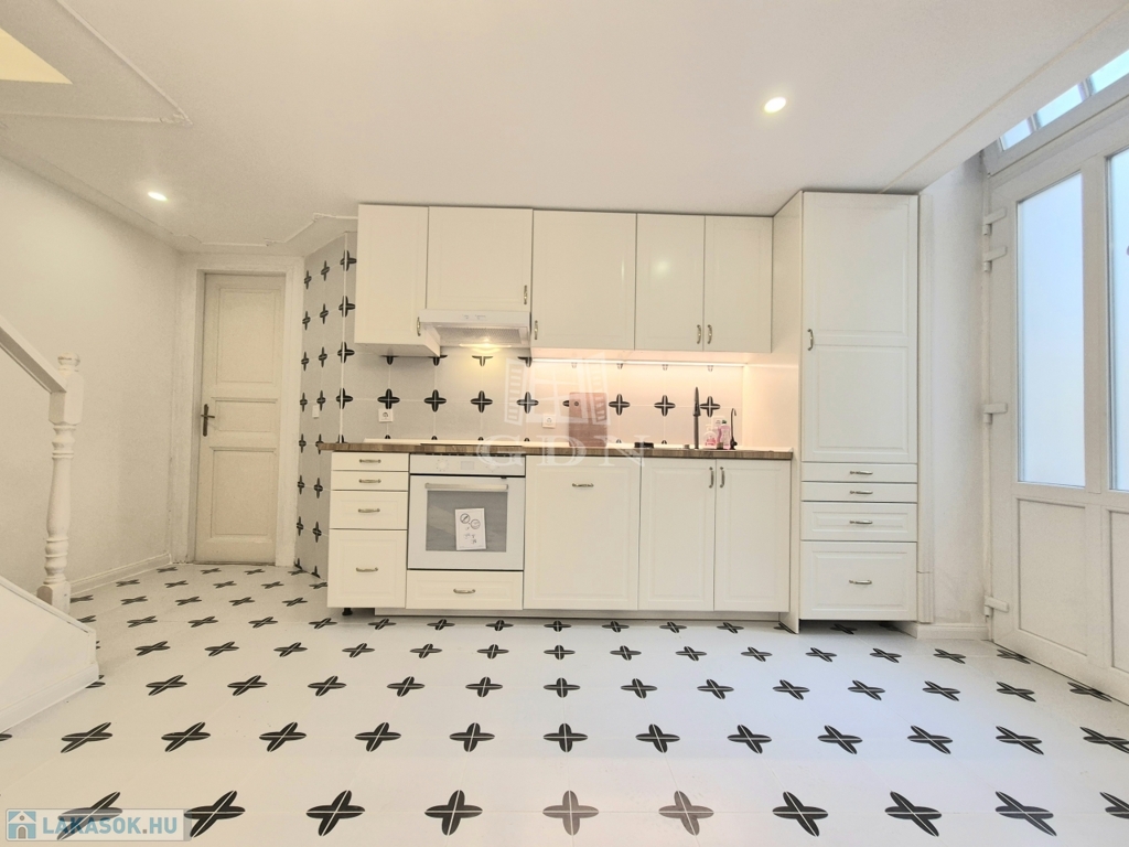 V. kerületben, a Károlyi-kert közelében, jó állapotú, liftes társasház földszintjén, eladásra kínálok, egy udvari nézetű, a tulajdoni lapon 45 m2-es (a valóságban 90 m2) belső kétszintes, 3 szobás, dupla komfortos, műszakilag-esztétikailag felújított ( víz, villany vezetékek cseréjén átesett, műanyag nyílászárókkal, gépesített konyhabútorral szerelt) alacsony fenntartású téglalakást.