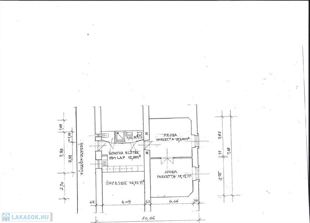 A fürdőszoba zuhanyzós, a meleg vizet gázvízmelegítő szolgáltatja, a WC pedig külön helyiségben van, ablakos.