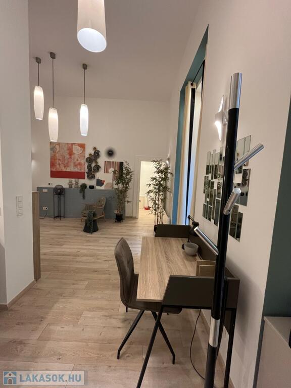 A lakás teljes körűen, lakberendező közreműködésével került kialakításra, prémium minőségben. A nagy belmagasság lehetővé tette egy kényelmes hálógaléria kialakítását.