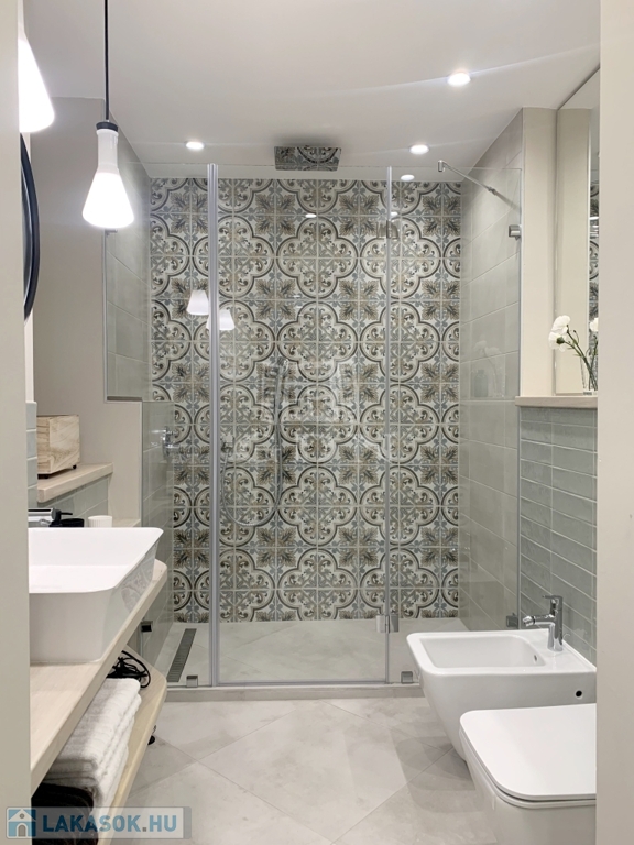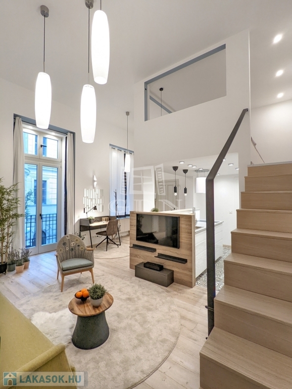 A lakás teljes körűen, lakberendező közreműködésével került kialakításra, prémium minőségben. A nagy belmagasság lehetővé tette egy kényelmes hálógaléria kialakítását. A műszaki felszereltség magas színvonalú: egyedileg szabályozható elektromos fűtés, klímaberendezés, modern fürdőszoba zuhanyzóval, WC-vel és bidével, külön háztartási helyiség gardróbbal, mosó- és szárítógéppel. A konyha teljesen gépesített, sütővel, indukciós főzőlappal, mosogatógéppel, hűtővel és borhűtővel.