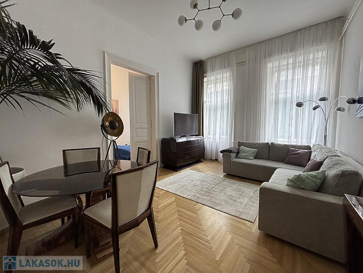 Eladó Budapest VI. kerületében, az Ó utcában egy 73 nm-es, 1. emeleti, felújított nagypolgári lakás.