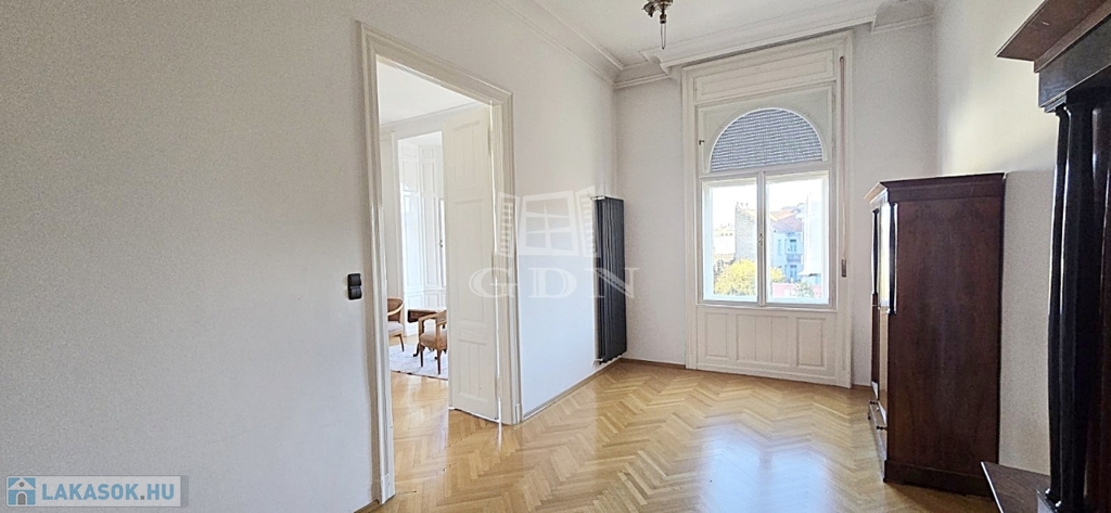 Ablakai utcára néznek, rendkívül világos. A 91 m2-es otthon jelenleg két szobás, igény szerint akár három szobássá is átalakítható. Esztétikai és műszaki felújítása három éve történt meg, a szobákban igényes parketta burkolat található.