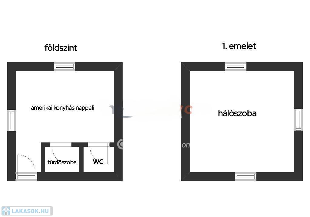 Az alsó szinten egy amerikai konyhás, világos nappali, étkezőrész, tágas fürdőszoba, valamint különálló mellékhelyiség kapott helyet, az elrendezés akár plusz szobával is bővíthető.