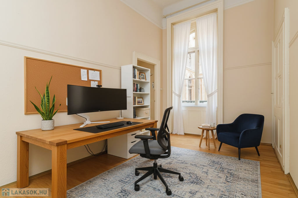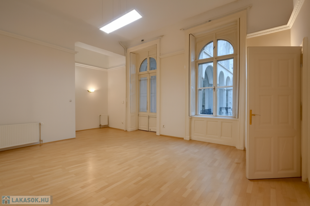 Az ingatlan csendes udvarra néz, két külön bejárattal rendelkezik, így akár irodának is ideális.
