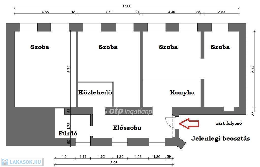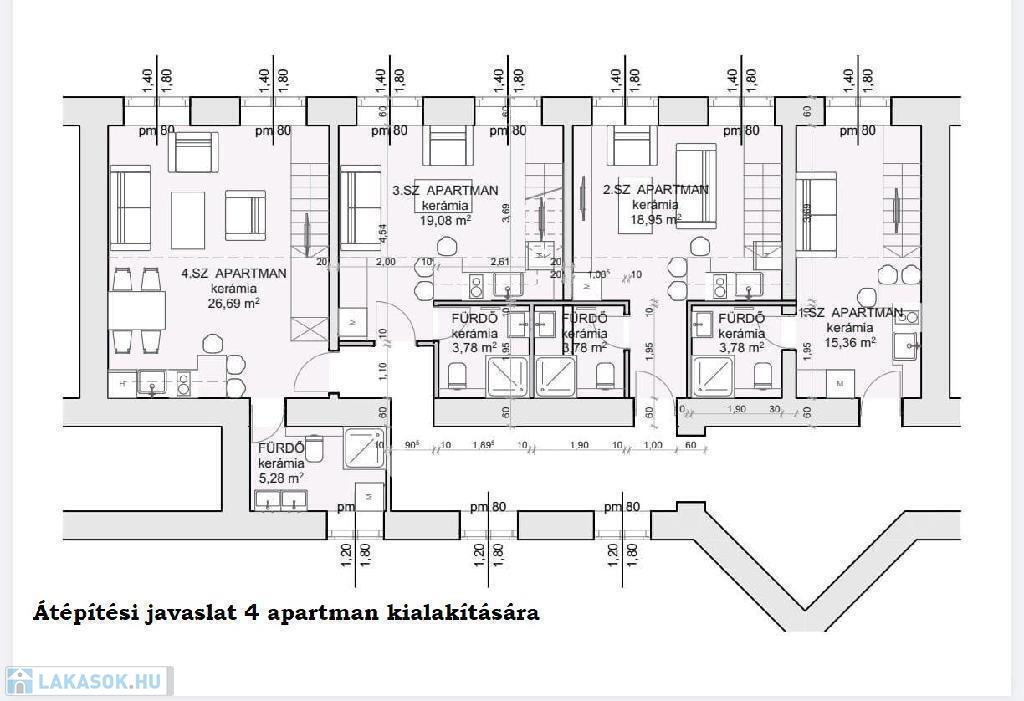 Budapesten a VI. kerületben a Bajcsy Zsilinszky úton eladó egy 121 nm-es 4 szobás lakás, ami adottságaiból adódóan jól átalakítható egy 4 lakásos apartmanná, ahol minden lakrész külön nyílik, van külön fürdő és kis teakonyha a lakásokhoz (lásd átépítési alaprajz).