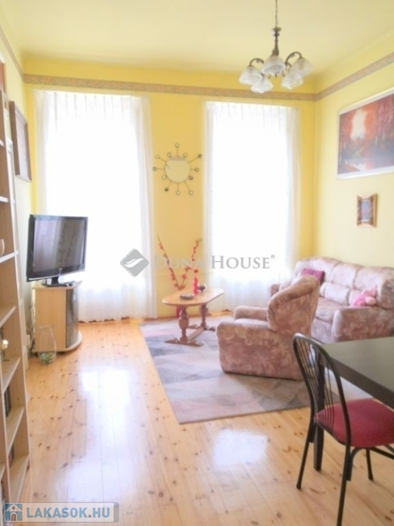 A VI. kerület egyik leghangulatosabb részén, a sétálóutcává alakított, parkos Liszt Ferenc téren, a Zeneakadémia, és a Világörökség részét képeező Andrássy út szomszédságában, kívül-belül gyönyörű állapotú, patinás, impozáns társasház 3. emeletén (lift természetesen van) eladó egy 54m2-es, nappali + 2 különnyíló hálószobás, napfényes, csendes, rendezett, belső parkra néző, kiváló elosztású, polgári értékeinek megőrzése mellett felújított lakás.