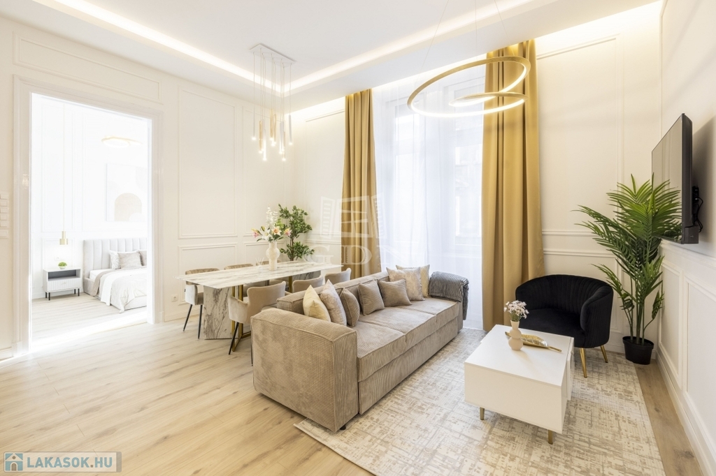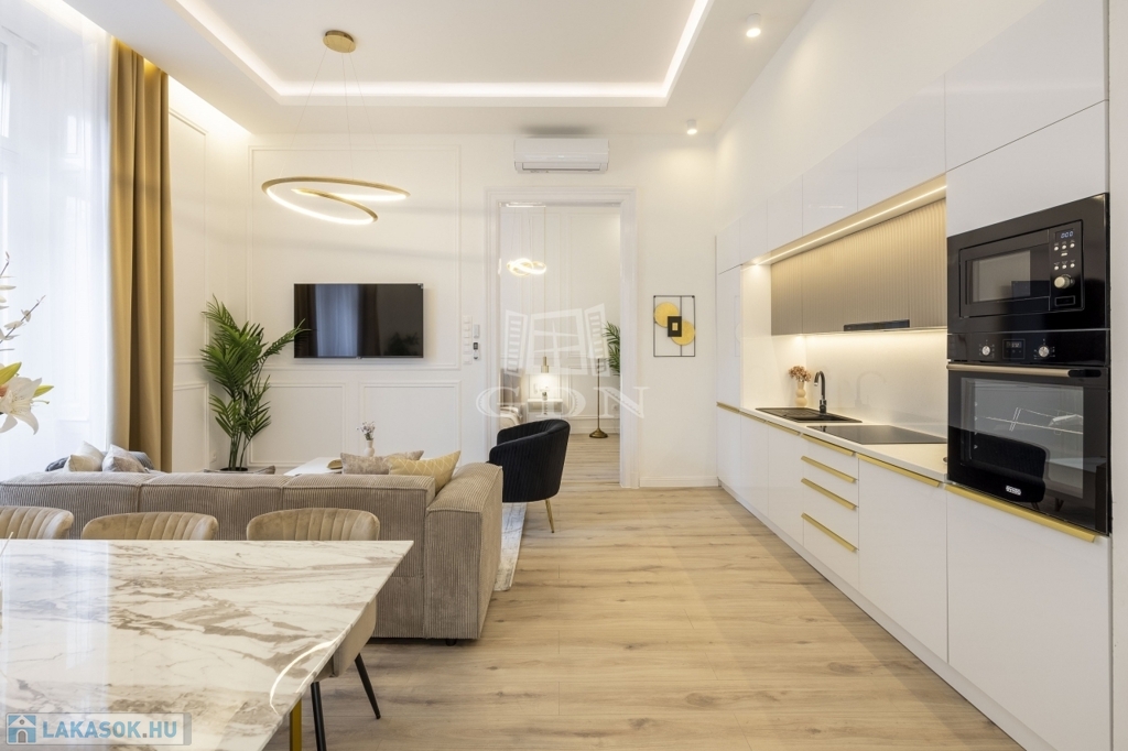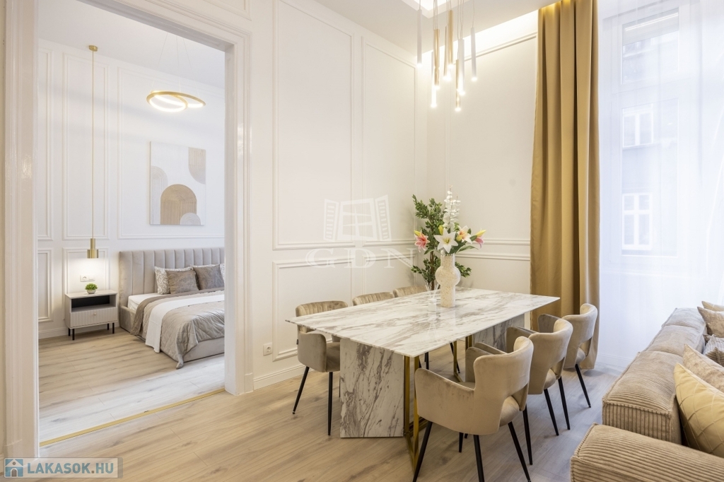 Lépj be Budapest szívébe! Ez a 88 m²-es, teljesen felújított, prémium lakás a VI. kerületben vár rád, az Oktogon és a Nyugati tér közelében. Az első emeleti ingatlan egy 1880-as években épült történelmi házban helyezkedik el – a lakás modern, stílusos és azonnal költözhető vagy kiadható. ️