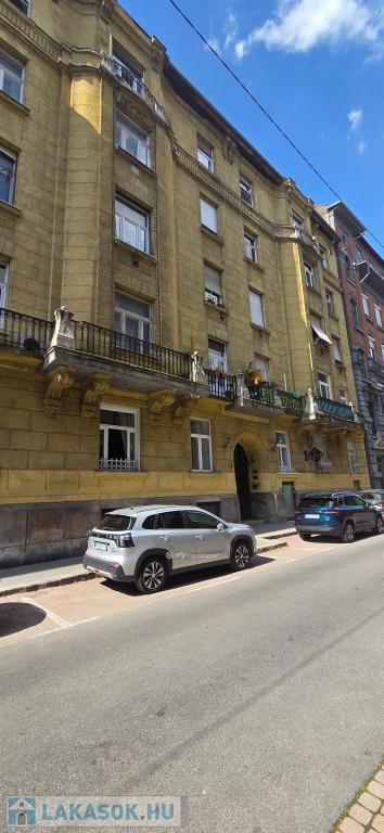 Budapest VI. kerületének csendes utcájában, de minden fontoshoz (Hunyadi téri csarnok és park, földalatti, stb) közel kínáljuk ezt a klasszikus, tágas, jó elosztású polgári lakást. A ház Góth Jenő tervei alapján 1911-ben épült. A 2.emeletén lévő (lift van!) saroklakás 3 tágas szobából, egy félszobából, konyhából, fürdőből, kamrából, és 2 WC-ből áll. Ideális akár családi otthonnak, akár befektetők számára (több egységre bontva). A lakás teljes felújítást érdemel, hogy régi fényében tündökölhessen, akár galériákkal kihasználva a 3,8m belmagasságot. A lokáció miatt kiváló lehet irodának is. Rezsiköltsége vállalható, a korszerűsítéssel lényegesen tovább csökkenthető. Érdemes egy személyes látogatás során megismerni a lakás és a környék atmoszféráját, belelátni a lehetőséget ebbe a hangulatos lakásba.