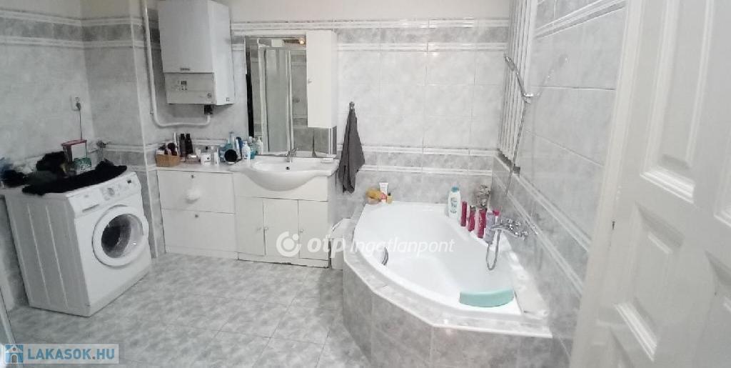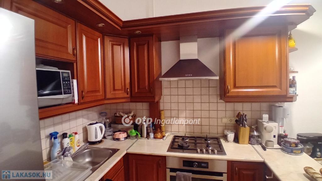 A lakásban három nagy szobából kettő az ucára, egy az udvarra néz. A fürdőszobája is méretes, kád és tusoló is található benne. A WC külön bejáratú. Jól felszerelt konyhája egyben van az étkezővel. A konyhából egy nagy kamra nyílik, amiből még egy kis spejzba jutunk. A fűtést gáz-cirkó kazán biztosítja. Négyméteres belmagassága miatt kiválóan galériázható.